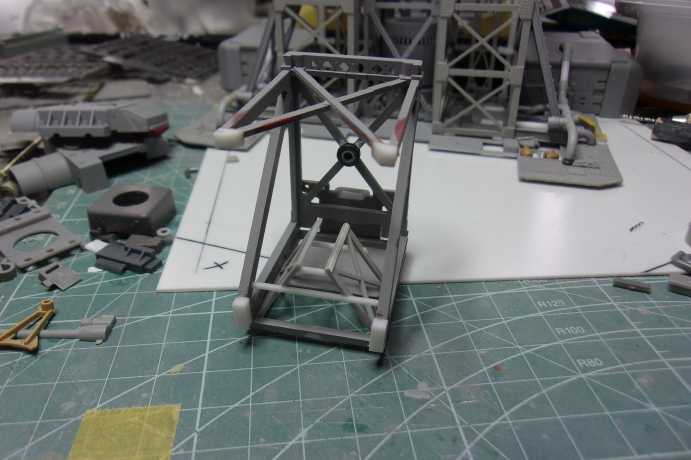 先々週は楽天の通信障害、先週は体調悪化という事もあって久しぶりのきちんとした更新となります。何だかんだで連休直前まで体調が悪かったのでこの三日間は無理せず作業を進めていきました。左右のタワー内にあるタンクの足場を組み立てました。完成するとこんな感じになります。作りは単純ですが数があるので意外と大変でした。しかも位置をきちんと調節して接着しなければなりません。タンク部分等はパチ組みで組めたのでここも・・・と思っていたらとんでもない事になりました。箱組みして作ったタワーを束ねる部分ですが・・・正面から見ると内部が丸見えです。というわけで底を隠す加工をしました。中央はタンクで隠れるためその必要がありませんでした。完成するとほぼ見えなくなるのはいつもの事で・・・。でも思い付いたら作らずにはいられないんです(;^_^Aカタパルト後部の形がほぼ決まりました。①②③④狭い空間に詰め込み過ぎた感がありますが・・・。あとは塗装でごまかすっ!ちなみに裏側はこうなっています。メタリオンが乗る台の後ろ左右にブラストの熱を遮蔽する板を付けました。できれば可動させたかったのですが、構造上難しいです。でもゴム系接着剤を使えば何とかなるかもしれません。ざっと組んでみましたが・・・2:8くらいの割合でバランスが偏っています。これはもう支柱ありきで作った方が良いみたいですね。今週のオダメねる子さん最近配信で多い冬毛Ver.です。髪型一つでかなりイメージが変わりますね。個人的には丸みが増してとても好みです❤