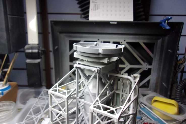 ついにブレンディが1200円になりました。しかも55杯分という少ない量でです。以前は200g以上入っていて500~600円程度だったかと思います。これからは一日に一杯、しかもスプーン一杯という薄さで飲むしかありません。いつの日にかは安くなるのでしょうか・・・。さて本日の作業はタワー部分の制作です。土台となるパーツはある程度決まっています。その上に乗るトラスの正確な位置をプラ棒等で決めます。トラスの内部が空っぽでは物足りないのでパイプやタンクなどで適当に埋めます。トラスの補強にもなりますしね。大まかな作りが決まりました。左右にある円盤の部分には後ほどタンクが付きます。そういえば最近流し込み接着剤の容器が変わりました。左の四角いビンが今まで、右の丸いビンが新しい製品です。今まで使ってきた四角いビンの方が片手で開けやすくて好みです。なので移し替えて使用した方が良さそうです。できれば溶剤のように詰め替え用のボトルタイプの製品があれば便利なんですけどね。パイプ類は土台とトラスを接着した後に付けます。トラスの隙間からピンセットや爪楊枝で正確な位置を決めますが、ほとんど立体パズル状態で指がつりそうです(;^_^A設置面積を増やすため、更にパーツを追加しました。今回はいつも以上にジャンクパーツを切り刻んで薄く加工する場面が多いです。左右に接着してみました。さすがにこのままでは底が薄すぎるのでこの下に1.5mm程度のプラ板を張り付けます。左右の円盤の上に付くタンクです。Nゲージの部品でしょうか?パッケージには蒸留タンクと書かれていました。トラスを含めてタワー部分のほとんどが通販ホビーショップで安売りされていた物です。プラモもガンプラと可動フィギュア以外はあまり売れている印象がありませんね・・・。では本日のまとめ、タワー全体を組んでみましょう。組むには色々順序がありまして・・・絶対忘れるので写真は多めに撮っておきましたw左右のタンクは上から慎重に降ろしていきます。最終組み立て時にはかなり苦労しそうです。このグレーのトラス部分はどうしても分解できなかったのでこのように面倒な事になっています。無理矢理分解しようともしましたが、全くキズを付けることなく行うのは不可能でした。はい、タワー部分はこの様なイメージになります。まだほとんど接着していないのでグラグラしますがあれこれ補強したり接着面の精度を高めた結果、意外としっかり立っています。裏から見ると鉄橋というのがバレバレwまあ完成後は見えなくなるので。あ、この強度ならカタパルト乗るかも・・・乗りました。カタパルトの角度がまだ未定ですが先っぽまでの高さは40~45cmになりそうです。ちなみにねる子さんのフィギュアは26cmです。ところで今日は作業開始の夜明け前から前日のレトロゲームニュースを見、それが終わった直後にカロリーメイトゲームのライブが始まるという、ほとんど一日中ねる子さん配信を見て過ごした休日でしたwww