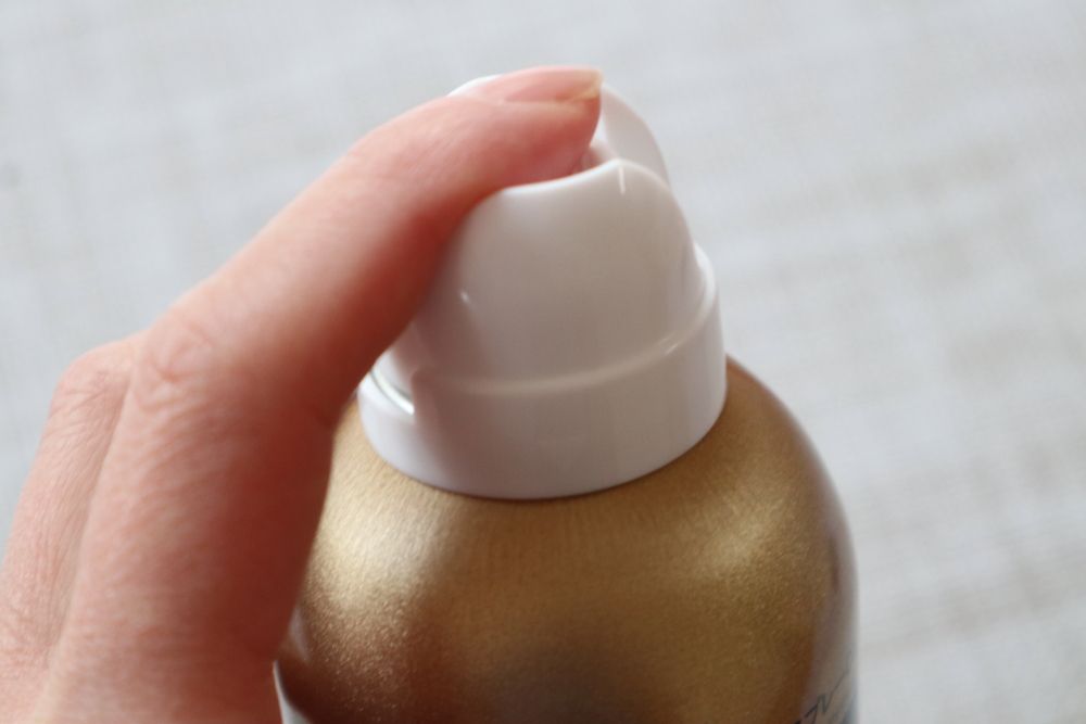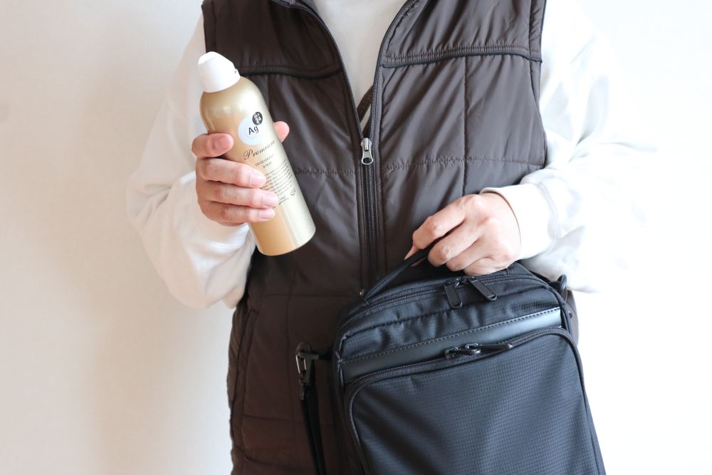 肌から10㎝以上離して円を描くようにスプレーしますよ。