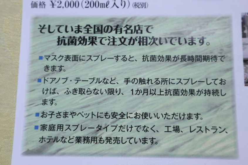 ドアノブ、テーブルなど手の触れるところにスプレーしておくと、