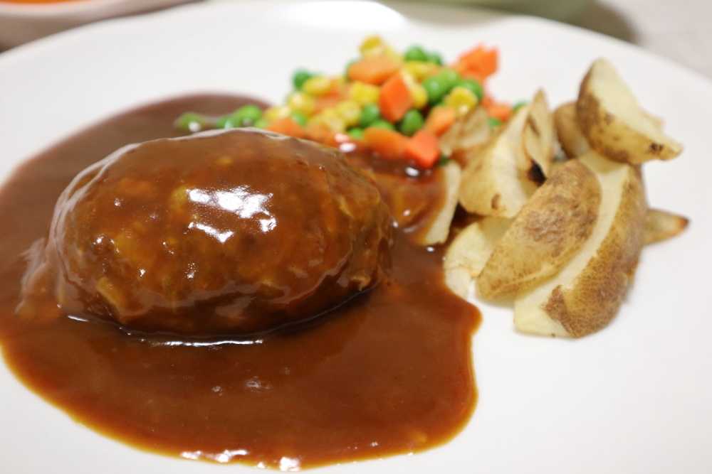 まずは、自家製ハンバーグにデミグラスソースをかけていただきました。