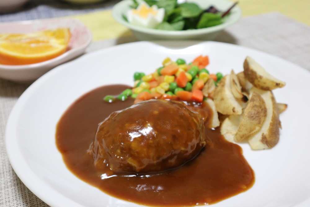私の手作りハンバーグが、洋食屋さんのハンバーグに早変わりしたよ。