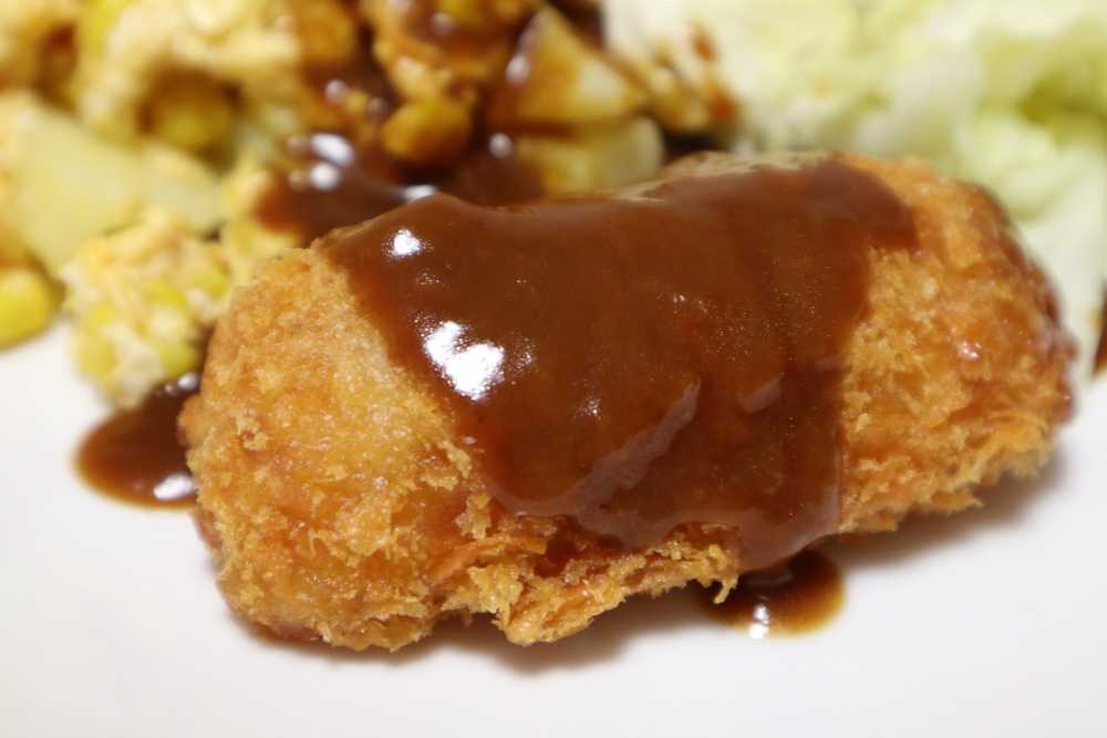 そして本家かつめし亭の秘伝デミグラスソースをかけます。