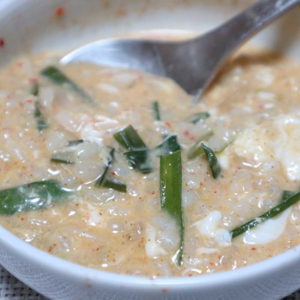 鍋の〆の雑炊にももち麦ごはんを使ってみました