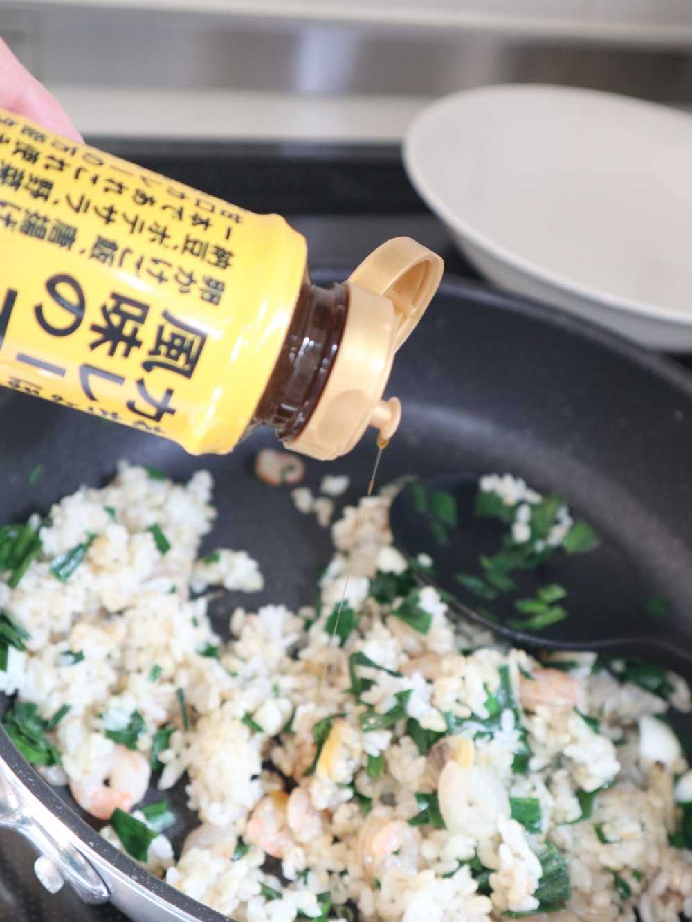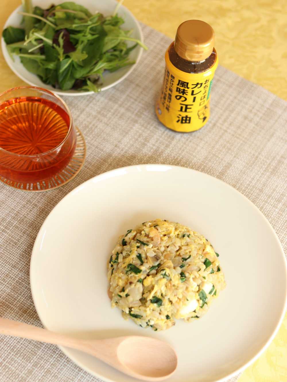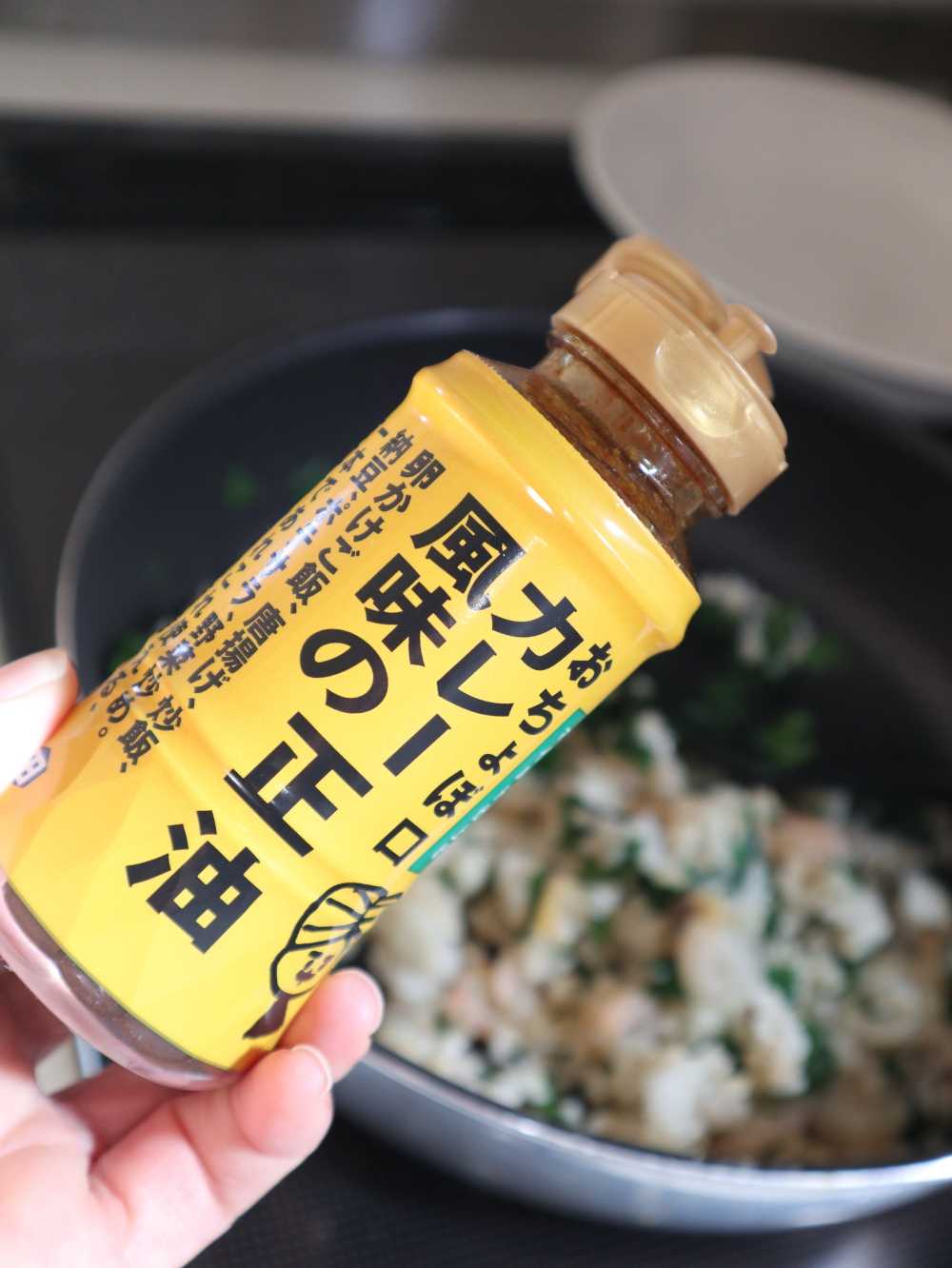 味付けは、正田醬油のカレー風味の正油と塩コショウでね