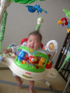 6ヶ月10日目()たっくんはちょっとだけハイハイするようになりましたお腹がちゃんと浮いていて、ほふく前進とは違います。まだズリバイの方がスピードは速いですが、なんかのっそのっそ這ってるなと思ったら、四つん這いでグラグラ進んでました。ズリバイもハイハイも似たようなものだけど、ちゃんと赤ちゃんとは言っても、どうやったら進みやすいか、楽しいか、頭の中でいろいろ考えてるのかなぁ。すごいなぁ。もうほんとーにあっちこっちズリズリ這い回っていて、しかもちょっとでも手を支えるものがあったらすぐにつかまり立ちをしようとします。私の背中に手を乗せて立とうとしたり、主人が横で寝てたら主人の顔に這っていき、顔をバシバシ殴りながら立とうとしたり…、テレビ台やソファ、なんでも支えにしちゃいます。もうほんとに目が離せないよぉ…。レインフォレストジャンパルーが活躍してます。と言っても、どうしても家事を済ませてしまいたい時とかに一日1回15~20分くらい乗せるだけです。今のところ。フィッシャー・プライス レインフォレスト・ジャンパルー《代引き手数料無料♪》それから、哺乳びんの乳首をYからMに数日前から変えました。そしたら、前ほどは嫌がらなくなり、飲む量が結構増えました。やっぱりYは思うように飲めなくてイライラしてたのかな…◇今後の予定◇1/11(金) ブックスタート絵本講座(図書館)1/16(水) 予防接種(ポリオ)1/17(木) ベビママ集会(NPO法人主催)1/25(金) 離乳食中・後期講座(市主催)1/29(火) 公民館のベビママ集会(生後6ヶ月までなので今回で卒業)♪楽しい子育てブログがいっぱい♪1日1クリックしてね♪