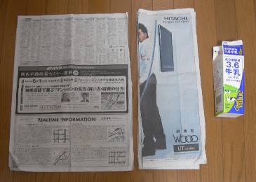 9ヶ月26日目()午前中は曇りでしたが、午後から晴れました今日は朝から近所のスーパーへお買い物へ布テープやテーブルクロス、食料品などを購入。昼食を急いで食べた後、愛チャリに愛息を乗せて健康センターへ行きました。今日は月1回開催される育児相談の日。先日私が「もしかしたら坊や虫歯かも?」と言ったママ(A君ママ)が育児相談で歯科衛生士さんに相談してみると言うので、私も一緒に着いていきました。と言っても、彼女はバス、私はチャリ…。許してあそばせ・・・。結果は・・・、虫歯じゃなかった赤ちゃんはよくなるらしいと言われたらしいです。虫歯じゃなくてよかったけど、振り回してごめんなさい児童センターまで歩いて5分ほどなので、育児相談の後、児童センターへ一緒に行きました。残念ながら育児相談がちょっと遅くなってしまって、14時の歌の時間に間に合いませんでした赤ちゃんを遊ばせたりお話して、帰りました。ちなみに、A君(もうすぐ10ヶ月)は今までズリバイとつかまり立ちしかしませんでしたが、今日、気が付いたらハイハイに変わってましたA君ママも、「あれ?ハイハイしてる」と嬉しそうでしたさて、話しは変わりますが、昨日書いた牛乳パックで作るイス。まず、牛乳パックを10個集めて下さい。結構大変です。グビグビ飲んで下さい。飲み終わったら軽く中を水洗いして乾燥させましょう。さて、集まったかな?集まったら、がんばって作ろうね<材料(前編)>牛乳パック10個、新聞紙5日分くらい、布テープ1本、はさみ1.新聞紙を広げ、縦2等分に破る。 うち10枚分くらいは、さらに縦2等分にする(つまり4等分)。2.牛乳パックに破った新聞紙をくしゃくしゃにして詰めていく。 4隅は特にていねいに詰める。 小さい方の新聞紙を最初と最後に詰めると、隅の方まで詰めやすい。 牛乳パックがふくらまない程度にぎゅうぎゅうに詰める。3.牛乳パックの飲み口の四隅を↓のようにカットする。4.牛乳パックの飲み口を閉じ、布テープを貼る。5.2~4を繰り返し、10ブロック作る。6.3個・3個・4個をそれぞれ横に並べ、布テープで2~3箇所くるくる巻いて、固定する。 つまり、3個・3個・4個の3つのブロックができます。 隙間ができないように、ぴちっと固定しましょう。 壁などに片側を当てて真っ直ぐ並べ、牛乳パックがずれないようにするといいと思います。7.上記の3個・3個のブロックを上下に重ね、さらに布テープでくるくる巻きます。 これが座る部分になります。 ちなみに、4個のブロックは、背もたれ部分になります。8.上記のブロック(6個)に、4個のブロックを当ててイスの形になるようにし、 動かないように布テープできっちり固定する。今日は、ここまでです。仕上げは今日は出来ませんでした。息子を座らせてみました。うーん、今日の反応は今ひとつでした・・・。ちなみに、仕上げの際、牛乳パックや布テープが見えないように布などでイスを覆うときれいに見えますが、赤や青の色つきガムテープでくるんでしまえば布を貼る手間が省けますし、撥水性もあっていいかもしれませんね。色つきとはいえガムテープではイヤだという方は、布やテーブルクロスを用意しましょう。私は、汚れても拭くだけでいいようにテーブルクロスを買ってきました。何センチくらい必要なのかわからなかったので、とりあえず1メートル買ったら、1680円もしました・・・。子供用のパイプイスって2千円くらいでありますよね、きっと・・・。パイプイス買える。。。たぶん1メートルもいらないと思います。余ったらもったいないなぁ。。。仕上げ編をお楽しみに。私もどんな風になるかまだ想像つきません。テーブルクロス、きれいに貼れるかなぁ。さて、息子は今日5歩とか6歩とかあんよしました今まで長くても3歩くらいで崩れ落ちていたので、今日はずいぶん進歩した気がしますとゆうわけで、今日をあんよ記念日としようかな