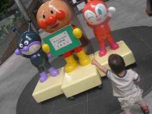 11ヶ月29日目()※日付をさかのぼって、6/28(土)の日記を書いています。もうすぐ1歳になるかめ吉お誕生日の前祝いとして、汐留の日テレタワーB1Fにある「アンパンマンテラス」へ行きました。 「アンパンマンテラス」は、アンパンマンのグッズがたくさん売っていて、4畳半くらいのプレイスペースがあるだけです。 行ったことはありませんが、横浜アンパンマンミュージアムの方が1000倍楽しいに違いない…。けど横浜は遠いし、とりあえず汐留で我慢我慢です。 あーーー!アンパンマンだ~ (そんなに嬉しそうじゃなかったけど) アンパンマンの顔をしたあんパンが買えます。 店内は狭いです。土日は特に、ベビーカー押しながらショッピングぅ~するのは辛いです。 うちは、途中から旦那とベビーはお外で待機してもらい、私はのんびりお買い物。 メモ帳やポーチなどを買いました。え?おもちゃ?買ってなーい これだぁれ? かめ吉は、アンパンマンテラスの横の広場や地下道を歩き回っていました何か光ってるぞ その後、マクドナルドでハンバーガーを買い、歩いて日比谷公園へ。 かめ吉が寝てる間にのんびりハンバーガーを食べようと思ったら、起きちゃった…。 かめ吉は、持参していたミニおにぎりとバナナを食べました。日比谷公園には遊具もいろいろありました。大きな鉄棒があったので主人がぶら下がったり、さか上がりをしようとしたら(結局できなかった)、かめ吉はなぜか大爆笑なんか壺にはまったらしく、主人が鉄棒で何かをしようとするたびに大声で笑い、周囲の人から注目を浴びるほどでしたその後、皇居周辺をお散歩しました。 桜田門前から国会議事堂を望む。 桜田門。霞ヶ関。二重橋(めがね橋?)。 こっちがホントの二重橋らしい。メガネ橋の門の前。いっぱい歩いて母ちゃんはヘトヘトですが、とっても楽しかったよ。 しかし、皇居の周辺はちょっと警備がきつかった。 よく考えたらサミット前とゆうことで、皇居や霞ヶ関もテロの警戒に当たっていたらしい。 のんびりお散歩なんてしてる場合じゃなかった…