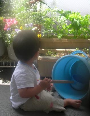 11ヶ月3日目()帰省7日目。梅雨入りしちゃったみたいです。実家滞在中にまた晴れ間が見えるといいんだけどなぁ。昼から雨予報だったので、ショッピングモールの開店時刻10時に合わせて、ばあばと3人でお出かけ。昨日水遊びに夢中だった息子に、お砂場セットを買いに行きました。自宅に帰れば出産祝いで頂いたお砂場セットがあるんだけど、安い物だし実家用に買ってもいいかなそれに、昨日ひしゃくをすごく気に入っていたようなのですが、自宅のお砂場セットにはスコップはあったけどひしゃくがなかったので、バケツとひしゃくだけでも100均で買おうかなと思いました。けどお店に着くとやっぱりどうせならクマデやジョウロなども一式欲しくなり…。アカチャンホンポへ行くと、「バケツ・ジョウロ・スコップ・クマデ」の4点セットで500円でした。ひしゃくがないなぁ…。で、ふと横を見ると「ぐ~チョコランタン」のお砂場セットがありました。こちらは、上記の4点の他に、「ひしゃく・フルイ」も加わった6点セットで1080円でした。バケツなどにもグーチョコランタンのキャラクターが書いてあってとっても可愛いので、こちらをばあばにおねだりどうもありがとうぐ~チョコランタン バケツセット帰りに早速公園に行きました15分ほど遊んだ所で、雨がポツポツ…また公園行けるといいね楽天で探したら、「ワンワンとうーたん」や「アンパンマン」のお砂場セットもありました【楽天】で「お砂場セット」を探す※昨日の日記に、ベランダでの水遊びの写真を追加しました。