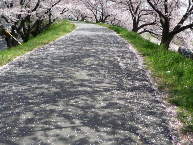 今が見ごろです! 例年の桜祭りの期間が過ぎて、のぼりや提灯が撤去され、 本来の桜並木が続き、風情があります そよ風に花びらが舞って、肩や髪に舞い落ち、幻想的な景色になります。 友人たちにこの風景が見せたくて、ギリギリまで待ってから連絡します