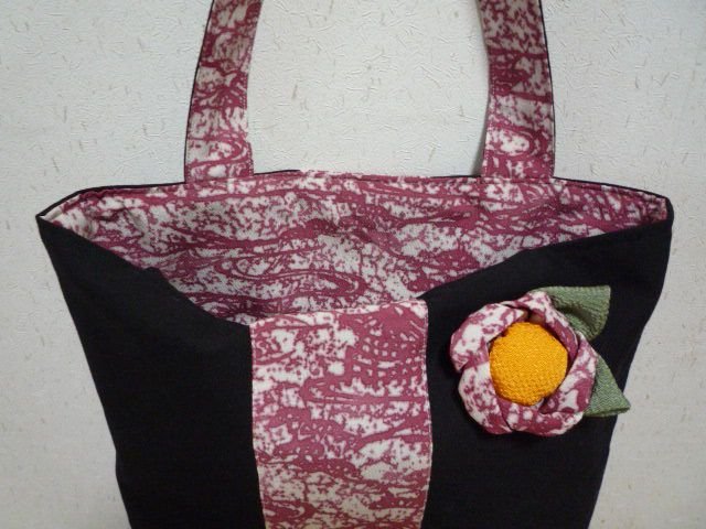 縦ラインと裏は以前ほどいた羽織地で。アクセントに花のブローチを。