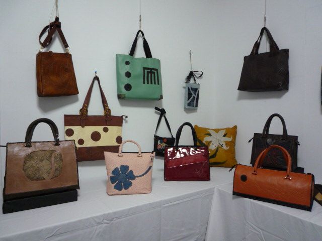 たった一人の方が、古布のあぷりけや革のバッグを作っているとのこと。