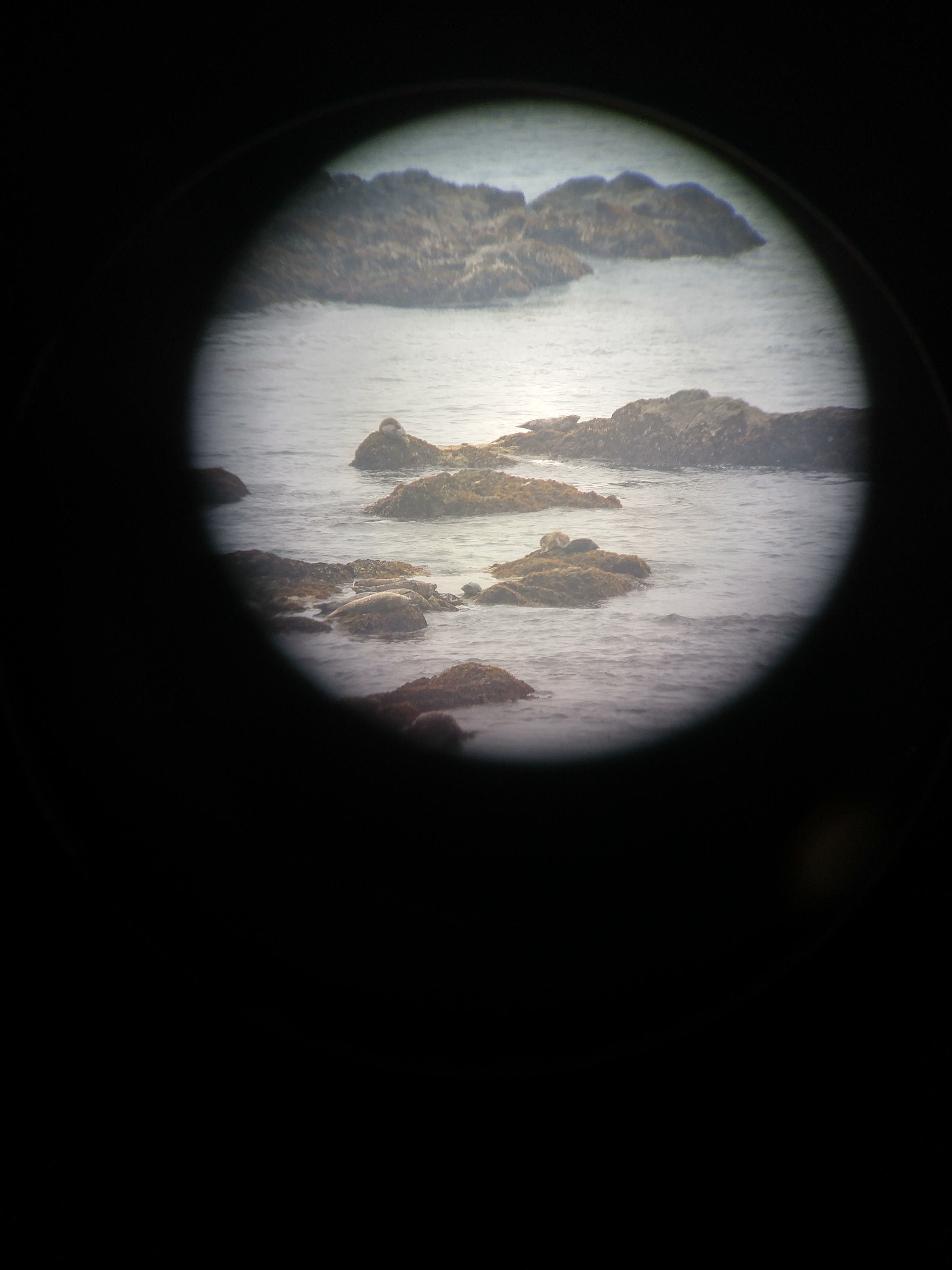 無料で望遠鏡が置いてあるので、のぞいてみると、沢山のゼニガタアザラシをみることが出来ました。思ったより、多かったですね。