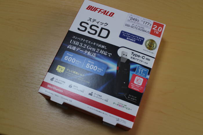 バッファロー SSD-SCT2.0U3BA/D [ポータブルSSD USB3.2 Gen2 スティック型 TV録画対応 Type-Cコネクタ付 2.0TB ブラック
