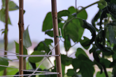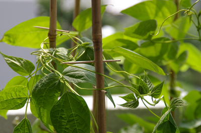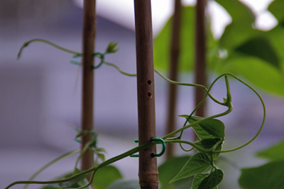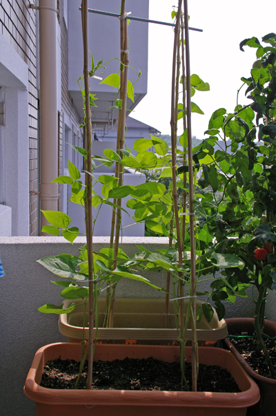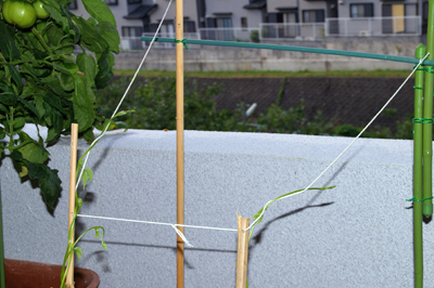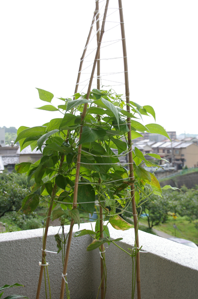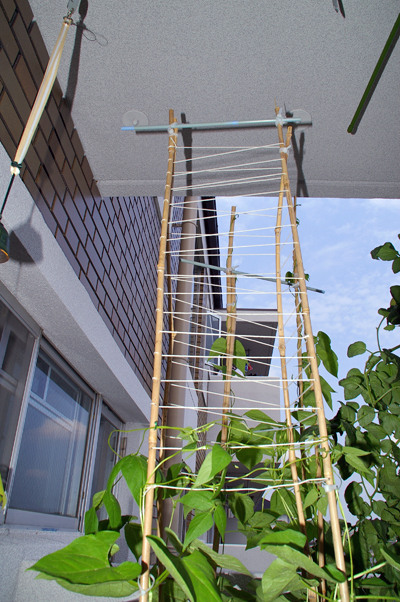 我がベランダのキュウリとトマトはすべて終了今はピーマンとモロッコ豆だけです見事とまではゆきませんが行灯巻きになってきました蔓は真上にゆこうとしますので毎日朝晩蔓の巻き直しが必要です結構手間がかかります