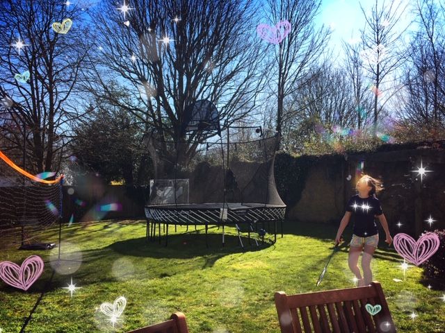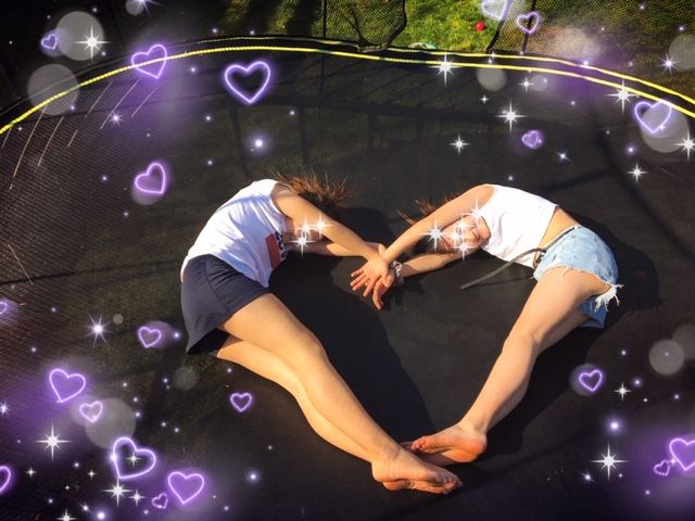 で、トランポリンで大はしゃぎする、