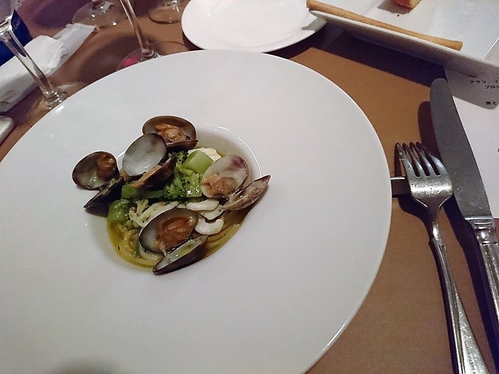 牡蠣とマッシュルームのグラタン、アサリのパスタ、蝦夷鹿もも肉のグリルが柔らかい中にも食感がよくて美味かった。