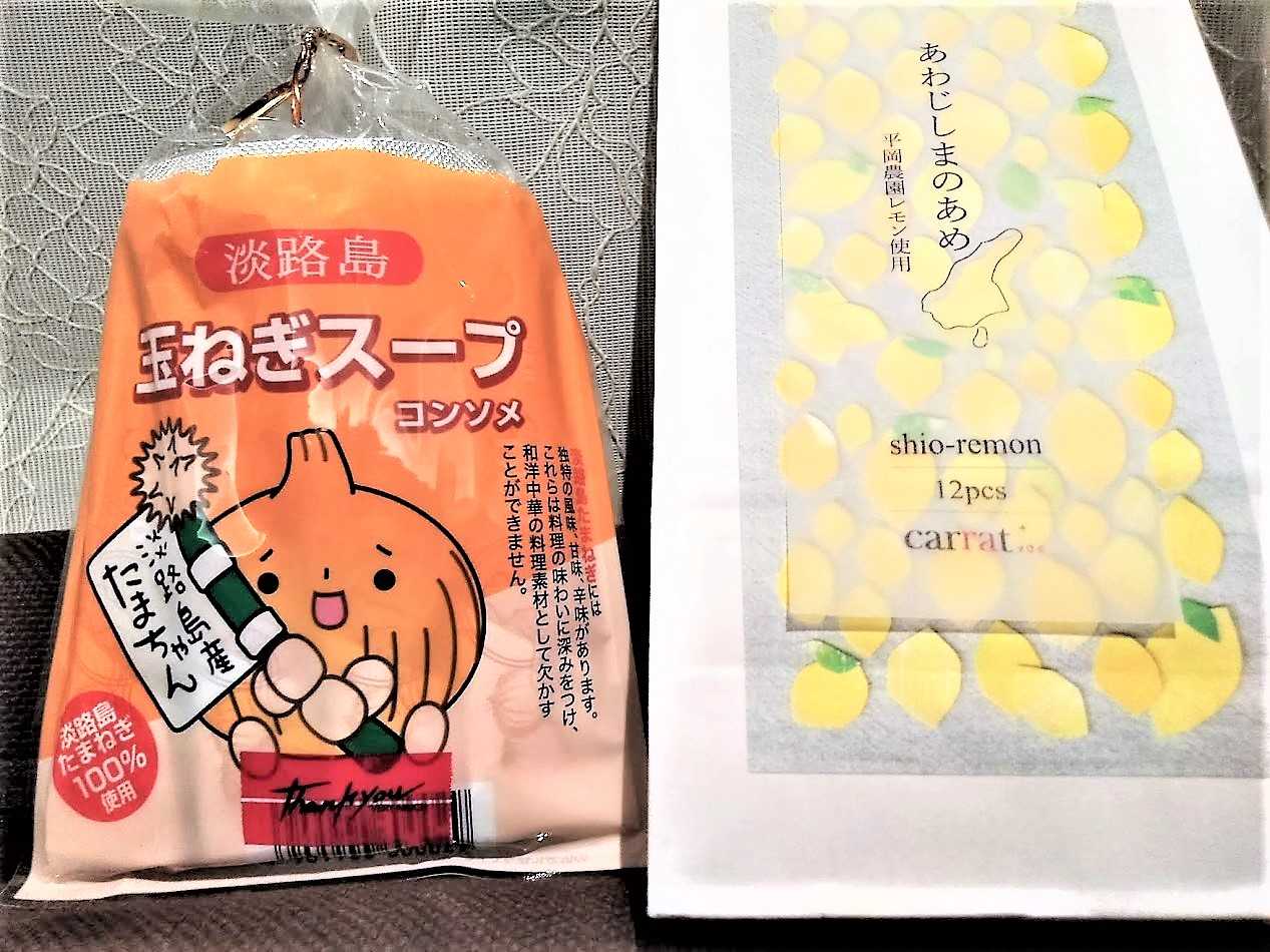 夕食は帰路の新幹線で秋の色どり弁当、そしてお土産は玉ねぎスープと瀬戸内産のレモン飴。