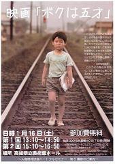 映画「ボクは5才」の上映会が美術館であった。万博のあった昭和45年頃の高知から5才の少年が父に会うために大阪までの一人旅に向かう、という話。なにかどこかでで見た記憶があった様に思えたが、生まれる前だから、どこかの講堂かなにかで見たのだろう。しかし鑑賞者も高知の昨日の様な風景が数多く出てきてそこは皆さん自体いろいろな記憶を思いだして頷く事たくさん、最後は感動の涙を誘う話しに、とても満足でしたでしょう。しかし入口では、新聞に告示が出るのが遅いだの、席数が少ないだの、なぜもっと早く知らせてくれないのなどと、主催者に食ってかかっているオバサン達には閉口するばかり。無料で見せてもらっているのだから、文句を言わないでほしいよね。今はユーチューブで見られるのですから。{http://www.youtube.com/watch?v=IftpKdmJUec}