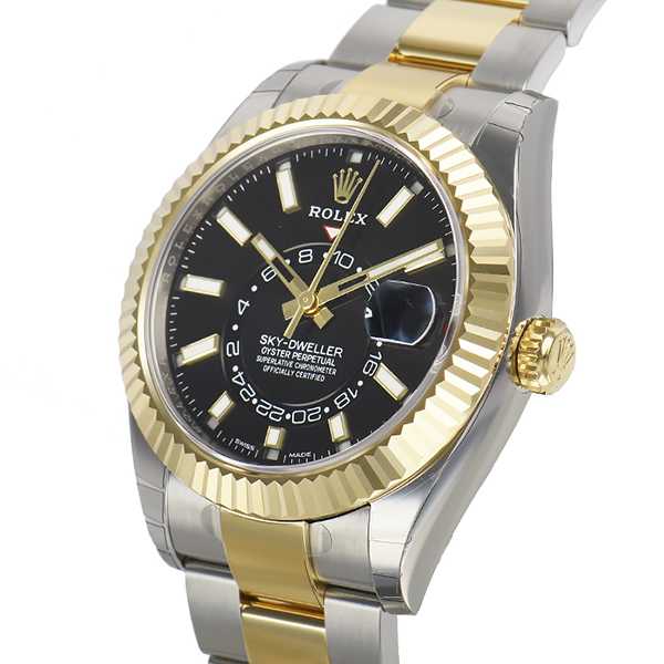 デイトナ、サブマリーナ、GMTマスター、デイデイト等ロレックススーパーコピーのNOOB工場からの通販です。最高級ロレックスコピー時計直販売。https://nobrolex777.com/「ブランド」ロレックス スーパーコピー スカイドゥエラー 326933「カテゴリ」ロレックス スカイドゥエラー スーパーコピー(新品)「 型 番 」326933「 機 械 」自動巻き「材 質 名」ステンレス イエローゴールド「 ブレス 」ストラップ ブレス「 タイプ 」メンズ「 カラー 」ブラック「外装特徴」回転ベゼル「ケースサイズ」42.0mm「 機 能 」2タイム表示/年次カレンダー「付 属 品」内箱/外箱 ギャランティー「ヨットマスターII」以来となるロレックス完全自社開発ムーブメント(Cal.9001)を搭載した、スカイドゥエラー。3月1日のみに手動調整が必要なアニュアルカレンダーとデュアルタイム表示が搭載されたロレックス初となるセミ・コンプリケーションモデルが登場しました。実用性を重視するロレックスらしく、リューズと回転ベゼルを操作することで、簡単に調整が可能となるシステムとなります。