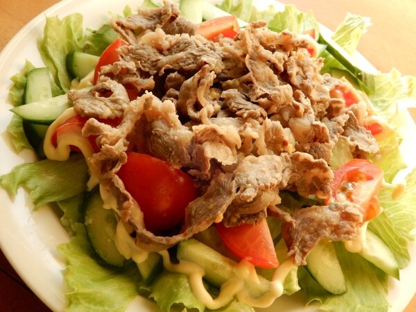 牛肉切り落とし❤ダイエットサラダ♪(粒マスタード)料理名:牛肉切り落とし❤ダイエットサラダ♪(粒マスタード)作者: ジョン・リーバス■材料(約3人分)レタス / 2枚きゅうり / 半本ミニトマト / 2つマヨネーズ / 皿1周位牛切り落とし肉 / 80g肉の茹で水 / 450cc位■粒マスタード / 大匙半位■塩胡椒 / 少々■レシピを考えた人のコメントダイエットには、肉も必要だと思います❤・・❤筋肉をつけ、身体の代謝を促すようです♪詳細を楽天レシピで見る→