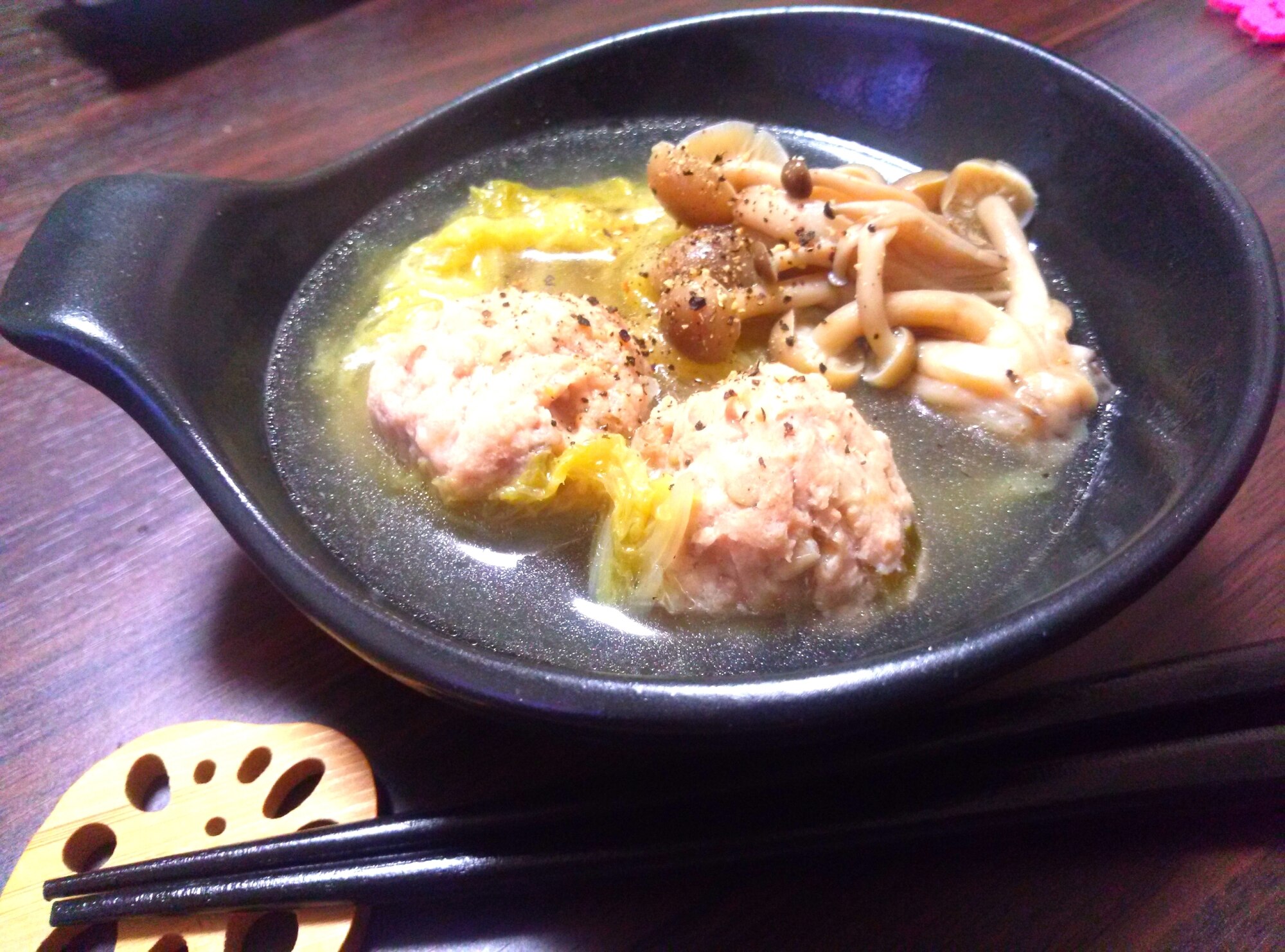 冬ダイエットスープ♪鶏団子スープ☆作者: ajj1117■材料(3人分)○鶏挽き肉 / 300グラム○刻み長ネギ / 半本○片栗粉 / 大さじ2○しょうがチューブ / 6cm○白ゴマ / 大さじ2○醤油 / 大さじ1○ごま油 / 大さじ1○塩 / 少々白菜 / 6枚長ネギ / 2本しめじ / 1パック水 / 800ml鶏ガラスープのもと / 大さじ3醤油 / 大さじ1塩コショウ / 少々しょうが / 2cm■レシピを考えた人のコメント心も体も温まるスープでダイエット♪お野菜もたっぷりとれますよ☆詳細を楽天レシピで見る→