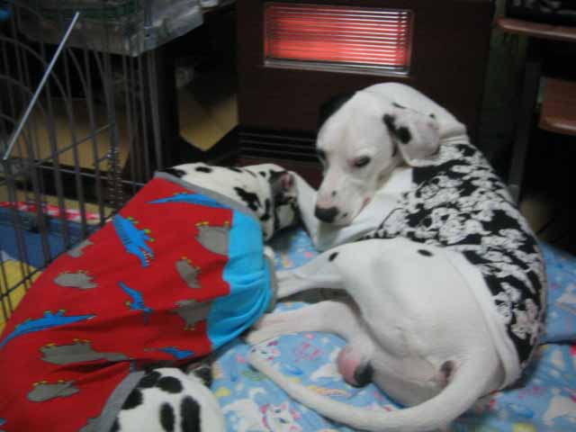 今日はあいにくのでしたが、昨日は良いお天気でした。きよしパパがこの土日連休で、昨日の朝、突然「広場に行こう」と連れて行ってくれました広場に行っても毎回同じような写真しか撮れないのですが付き合ってくださいね。↑6/5日記 の使い回しじゃありません(笑)で出かける時はきよし&ふじこは後部座席にいるのですが、助手席に座るのが大好きなきよし。だんだん前ににじり寄ってくるんです(笑)で、一瞬の隙を突いて、助手席に座ってるミヨミヨの上に、ちゃっかり座るんです。はっきり言って重いですきよしが前に来るとそのままジッと動きませんが念のため二人でシートベルトをしています。↑トイレ中のきよし・・・開放感あふれる場所でのトイレは気持ち良いでしょうね広場に着くと・・・必ず2人でダッシュもっと、よく考えて行動すれば良いのに、着いた瞬間から走り回るので、短時間でバテます(笑)そんな、着いた瞬間の嬉しそうなきよし&ふじこの動画をご覧下さい。(毎回、同じような動画しか撮れなくてすいません。汗)↓ ↓↑水溜りに興味なさげなきよしだったのに・・・↑思わず、水溜りの中をジャンプ↑走り回ってるのがわかるでしょ~↑早くもお水休憩のふじこ・・・広場の周りを一周しながら歩いていると、偶然ココちゃん発見いつもココちゃんは午後から広場に来る事が多いので、朝一番にいてミヨミヨ達もビックリ。でも、きよし&ふじこはすっごく嬉しそうでしたよ~その後、同じダルメシアンの「かんすけ」くんも来てみんなで遊びました。↑ふじこ、久しぶりに会うココちゃんにちょっと緊張ココお姉ちゃん、おひしゃしぶりでちゅ☆↑かんすけくんにもちょっとビビってました(でも最初だけ)かんすけお兄ちゃん、体がおおきいでしゅね☆↑ココちゃんのおもちゃでたくさん遊びました↑はやく~ボール投げて~や~↑偶然そばを通りかかったゴールデンさんとも遊びました↑ふじこ、遊ぶ気マンマン(右は、かんすけくん)しばらくすると、早くもきよしの舌は横からデロ~ンと出てきて息もハァハァ・・・途中では木の陰に体を隠して休憩してました(笑)↑コッチ向いてるんですが・・・わかりませんよね(笑)↑ココちゃんも休憩してました。あまりの暑さに約2時間で我が家は撤収~。(笑)ココちゃん&かんすけくんは、もうちょっと遊んだらしいです。戻る途中にきよしパパ御用達の釣具やさんに寄りました。きよしパパを待ってる間・・・↑後部座席できよしパパを待ってるかのようなふじこ。実は狭くて寝れないのです・・・↑きよしの向こうには空間がいっぱい。もうちょっと詰めれば2人とも寝れるんだけど・・・↑きよしお兄ちゃん、場所取りすぎでしゅ☆↑そんなモン知るかぁ~。寝たもん勝ちじゃ~いつも、ふじこに押されているきよしにしては(笑)よく頑張りました着いてからは、予定通りのシャンプーをしました。↑シャンプー後の2人。暑くないのか これも、6/5日記 の使いまわしのようですが・・・違いますよ~(6/24の日付、見えるかな~?)シャンプーした後、体が濡れている事が許せない(と思う)きよし。ヒーターをつけろと、きよしパパに要求後、この暑い季節に体が乾くまで本当にヒーター前にジっとしていましたコレって、ある意味、『ガンコ』ですよね~