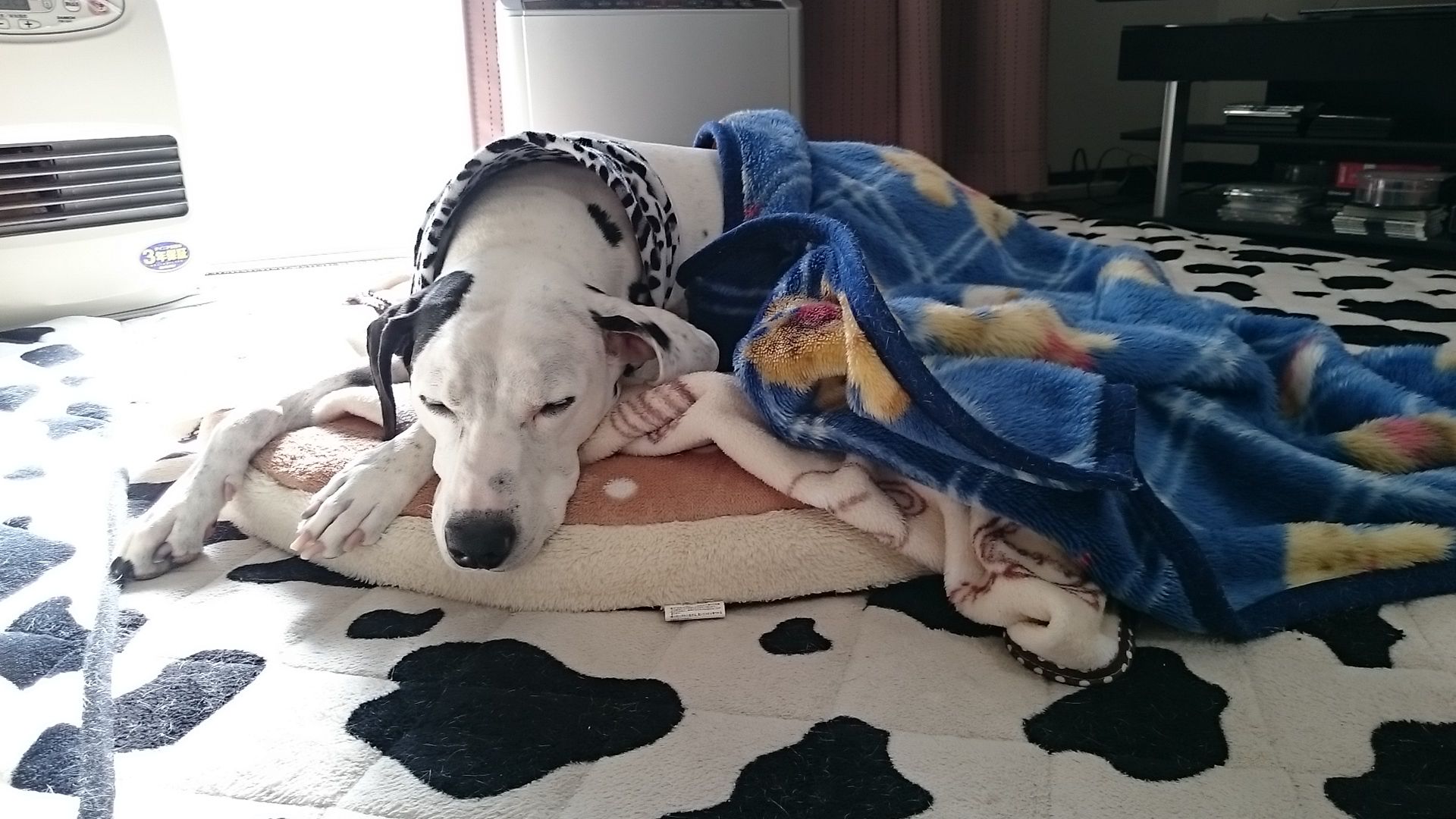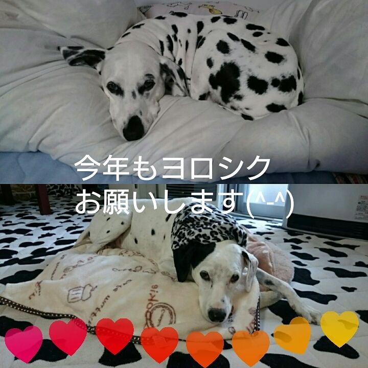 去年、書けなかったので記録用に書いておきます。2016/12/29からのきよし&ふじこ12/29(金)この日のきよしは寒そうでした。ご飯を食べる時の足の曲がり具合も・・・う~ん・・・この日からミヨミヨもパパも年末年始のお休みに入りましたがあえて散歩は別々に行くことにしました。ふじこにしたら、パパと2人っきりのデートのようで楽しかったはず実際に、散歩から帰ったふじこはパパと2人きりなんだから楽しいに決まってまちゅこんな感じだったしきよしもふじこ&パパが一緒だと、どうしても歩くペースが早くなったり急いでしまったりするので別々の散歩にしたほうがきよしのペースで歩けて良いみたい。久しぶりのチッコアートも見れたし帰ったら爆睡ふじこもまったりパパはサツマイモで干しイモを作ってくれてそれを覗くきよしこの日は薬は飲まずに過ごすことができました。そして翌12/30(金)この日はsyuhoちゃんに作ってもらった胴輪で散歩しました。セーターにネックウォーマーに胴輪に靴に・・・モコモコでしたが(笑)動画も撮りましたのでどうぞ。 歩くのは超~スローペースそしてちょっと歩くとオヤツの催促も忘れないきよし・・・午後からはリビングできよし&ふじこがヒーター前の争奪戦を地味に繰り広げたりふじこもきよしもまったりとした時間を過ごしました。2016年最後の日12/31(土)この日はみんなでお寝坊。7時半になっても誰も起きなくてリビングに行ったら暗がりの中ふじこが(起きてるけど)寝てた朝のお灸をしてきよしは朝の散歩へ散歩の後はパパとお墓参りに行って帰ってきてからやっとコタツ布団を出しました。さっそくコタツ布団にもぐりこんで寝るきよし(コタツはついてませんよ)こうして我が家のリビングが白黒デンジャラス・ゾーンに変わったところで2016年も終わったのでした。2016/12/2(金)に体調を壊し(数年、静かにしてくれていた首頚椎ヘルニアが再び痛み出した模様)大晦日にも鎮痛剤を飲み、12月だけで15回、鎮痛剤を飲んだきよし。・・・朝の冷え込みがキツイ日は痛みが出るようです。この1ヶ月で、きよしの痛みの出るサイクル、痛いときのサインもわかってきているのでなるべく「キャン」と鳴く前に薬をあげたいけど間に合わずギャン鳴きされて落ち込んだりこの痛みは少なくとも冬の間は続くのではないかと(勝手に)思っています。・・・寒暖の差がない地域に引越ししたい(笑)なるべく、きよしが快適に過ごせるよう我が家なりのサポートをしていくつもりです。ポチっとしてもらえると嬉しいですにほんブログ村