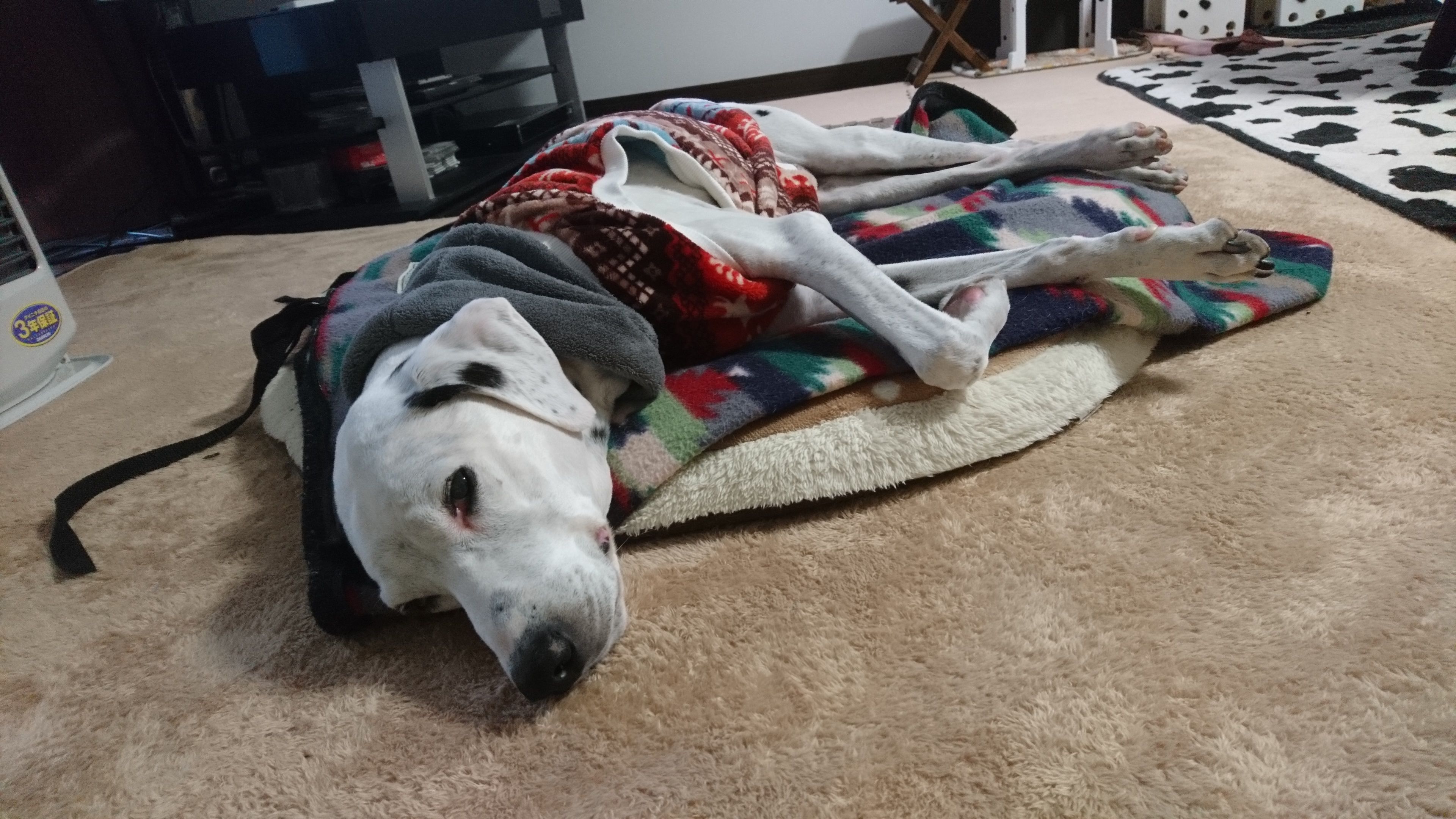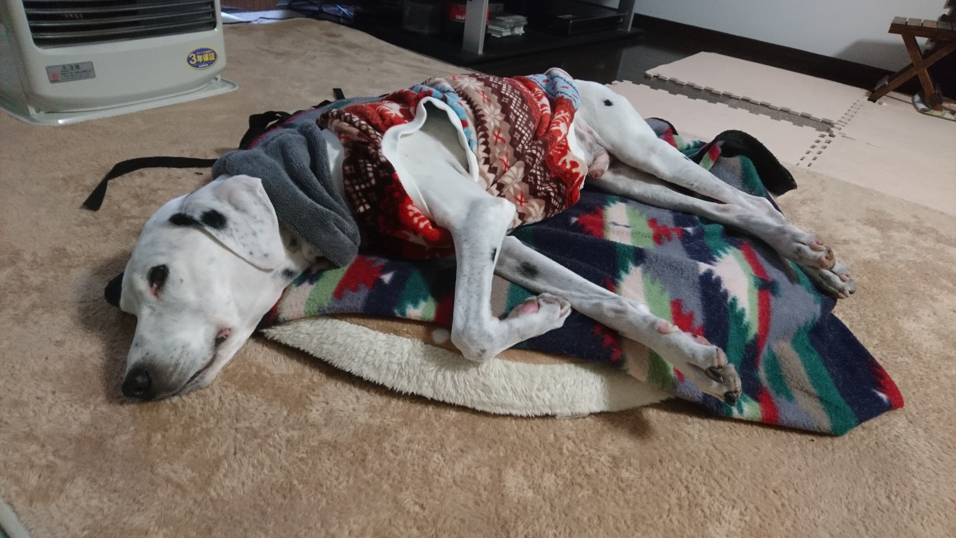 寒いとき、こうして毛布を掛けてあげると・・・満足そうにますます動かなくなります