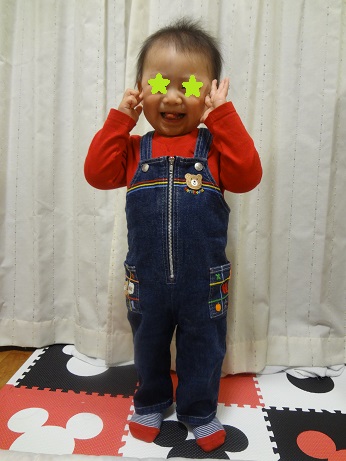 次男です長女より薄毛です(苦笑)新品の着画といきたいところでしたが、せっかくポーズを取ってくれたのでオーバーオール、甥っ子ちゃんからのお下がりです。4年くらい前の物かな?せっかく胸にビーンズくんの凝った刺繍があるのに普段はスタイで隠れちゃいますインに着せたのはエブミキのロンT。こちらは新品で、長女にお下がりできるように赤にしたのですが・・・次男に真っ赤は似合わなかった最近、覚えたての「いいお顔」ポーズ。これ、長男がドラキッズに通ってた時に教えてもらって、次男には私が教えました。BEBESHOP楽天市場店さんのセールをスルーしたので、その代わりと言うわけじゃないのですが、こちらをポチってしまいましたローズの80を。ベビー・子供服のクリップさんで購入。お気に入りに入れておいて、すっかり忘れてたら値下がってたので。