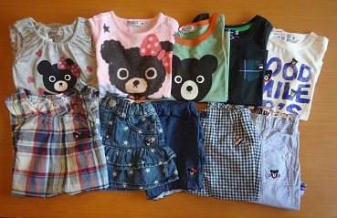 百貨店のプレセールに行って来ました婦人服は昨日・今日の2日間なのに、子供服は今日1日限り!妹(求職中)に子守を頼んで短時間で買ってきました。いろんなブランドがある中、ダブルBとブラックベアのみ~(ミキハウスはセールでないです)長女&次男に仲良く5点ずつ。私には珍しく、ちゃんとコーデして買いました。B子ちゃんのTシャツ、白を購入予定でしたが、90が売り切れ。でもBEBEのTシャツを白2枚買ってあるからピンクでもいっかなと。白なら裾レースのチェックのショートパンツも欲しかったのですが、こちらも90はなかったので、諦めが付きました。デニムスカートだと真夏は暑いのでフリフリブルマも。フリフリブルマはMサイズ(90-110)です。ワンピース2点。今季のチェックワンピは90がなく、100を購入。Bくんの爽やかコーデパンツの折り返しがチェックワンピとお揃いなのでワンピが90なら良かったのにな~。って、今回ワンピ買わなきゃいいですよね(苦笑)こちらのTシャツ、ピンクも買って男女イロチにしようと思ってたのですが、B子ちゃんのTシャツがピンクなので止めました。まったく同じ色なんだもの。ブラックベアはノースリーブの作りが小さいのでサイズ100ですが今年用です。パンツは折り返して今年、折り返さずに来年も履けるかな?ついでにBくんのノースリーブも買っておきました。すべて30%OFF、そこから株主優待カードでさらに10%OFFで買ってきました予算もあるので、厳選してきました。名残惜しい物も・・・いやー、台風で行けないかと思いきや、逆に晴天!で外は暑かったです