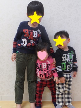 BABYDOLLさんで購入したトレーナー、長男サイズを交換してもらい、やっと3人お揃いで着ているところを写真に撮れました長男120、次男90、長女80。全員ジャストサイズです。不良品が届いてしまったBdeRのフリンジブーツも無事BEBESHOP楽天市場店さんから交換品が届きました。サイズ14.0cm。アシックスの同じサイズのブーツより0.5cmほど小さめでした。余裕はあまりないですが、ブーツはあと2ヶ月ほどしか履けないのでジャストでも大丈夫。来年は30%OFFくらいで買えたらいいな。