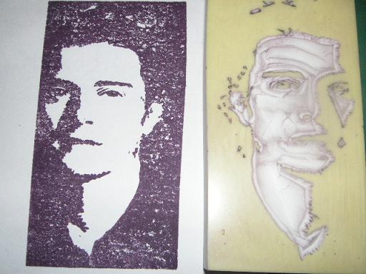交換会のタグやらカードやら、今年の分は全部やっちゃって送っちゃってなんだか寂しくなったので、久しぶりに写真スタンプを彫りました。今回モデルに選んだのは「オーランド・ブルーム」!何種類か大きさと白黒の状態を変えながら印刷、ようやく彫り開始。かっこいいんだけど、ちょっと違う?かな~(笑)アビちゃんのお見合いが明後日に決まりました!ネットでアビちゃんを見たお子様のいない40代のご夫婦です。隣の県なので、ちょっと遠くなりますが電話でお話させていただいた感じではよさそう!ただ猫ちゃんを飼うのは初めてなので、その辺り不安な様子。決まればいいな~♪そうこうしてるうちに、新聞をみた方からもTELがありました。こちらは男性で、今オス猫くんを飼っているのでお友達に!とのこと。こちらもよさそうな方でした。家も近くだし・・・なーんもない時は、アビちゃんはどうなるんだろう?って思ってたけど、一つ決まりそうになるとこんな風に連絡があって不思議。でも他にも里親を待ってる猫ちゃんがいるので、アビちゃんの嫁入りが決まれば、今度はそちらのお世話が出来るといいな~って思います。でも、新聞とかネットもそうだけど、やっぱり写真載せると効果が違います!今回は無料の新聞に白黒写真つけたのですが、アビちゃんの可愛さを伝えることが出来てよかったです。そんなこんなで、日曜はまたドライブがてら高速に乗ってアビちゃんの元へ参ります!
