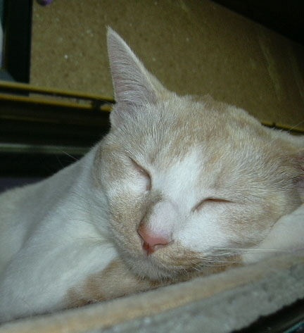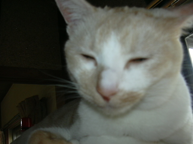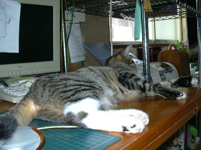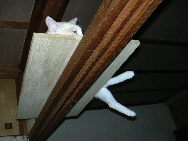 朝4時何分かに起きたんでパソコンをやってます。猫達はハナちゃん以外起きてます。(笑)ハナちゃんはねすぎ!こーんな状態です。↓1番高いたなの上でぐっすりと。本当に猫って撮りにくい。シャッターおしたら動きやがって。