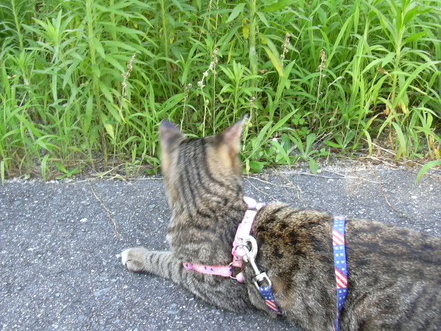 今日の朝はヴィトンと散歩してきました!でも、腰が退けていました。(笑)今日も写真はって終わります。昨日の散歩中の写真。ピー。ハナにはハーネスとリードがないので抱っこで散歩。草むらの近くでビクビクしているところです。チラホラしてます。(笑)