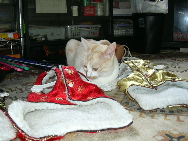 ピーコ(チョロ)ってドジかも!さっき高い所から降りた時しくじって失敗しました。上で寝ていたハナには迷惑だったようでお目目をパッチリあけてました。ですが、一時したら眠ってます。最近というか、前からなのですがハナが全く動かなくなってきました。なので、太っているんだなって思った。オモチャの鈴を鳴らしたら反応するけどトンのせいでハナちゃんが遊ばない~ハナ太ってるけど意外にジャンプ高いです!デブのくせに!今日トンのハーネスをハナにつけてみると。。。届かない。。ハナの方がでかいって事だなー。あとちょっとのところでハーネスがストップしちゃった。O(>皿<)Oでも、頑張ってつけるとお肉が・・・・(笑)お・・・お肉ぅぅ!結局ハナは散歩できませんって結果なのです。(泣
