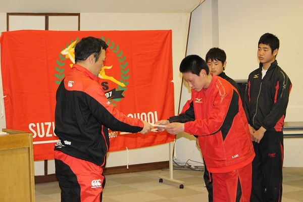 一年の頑張りに報いるため、主コーチから生徒一人ひとりに。