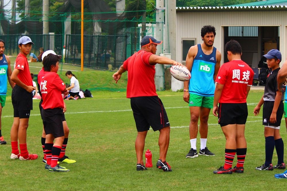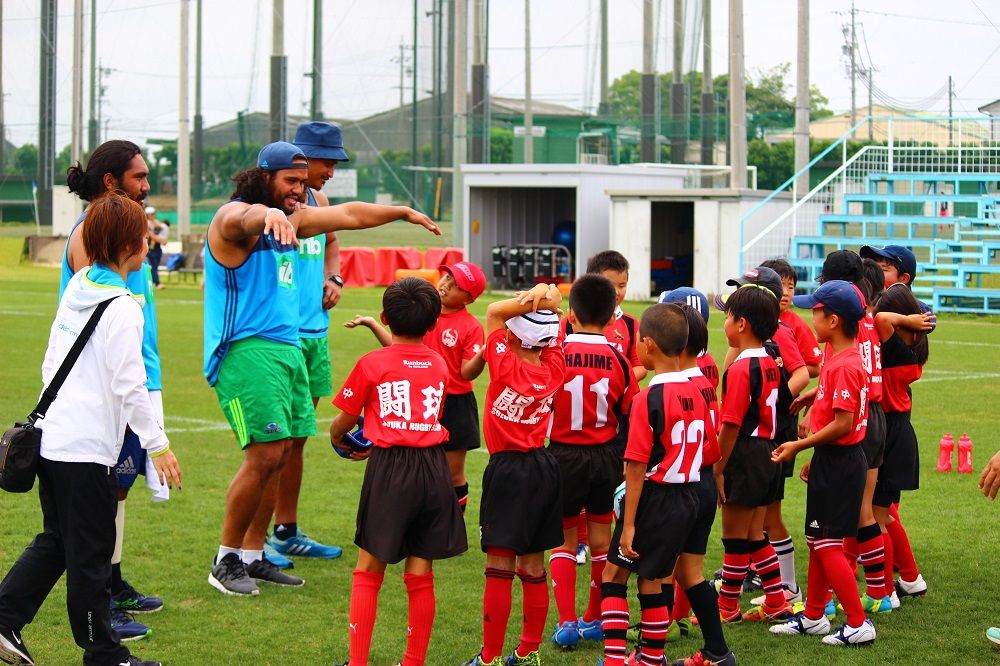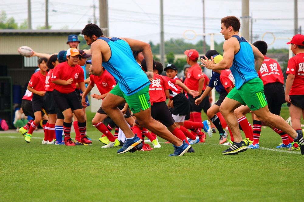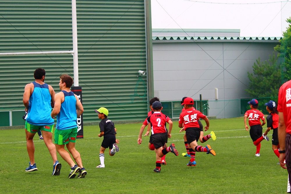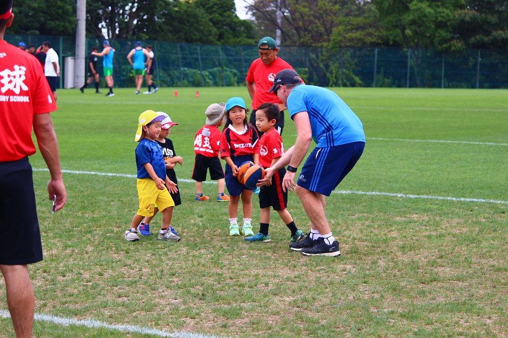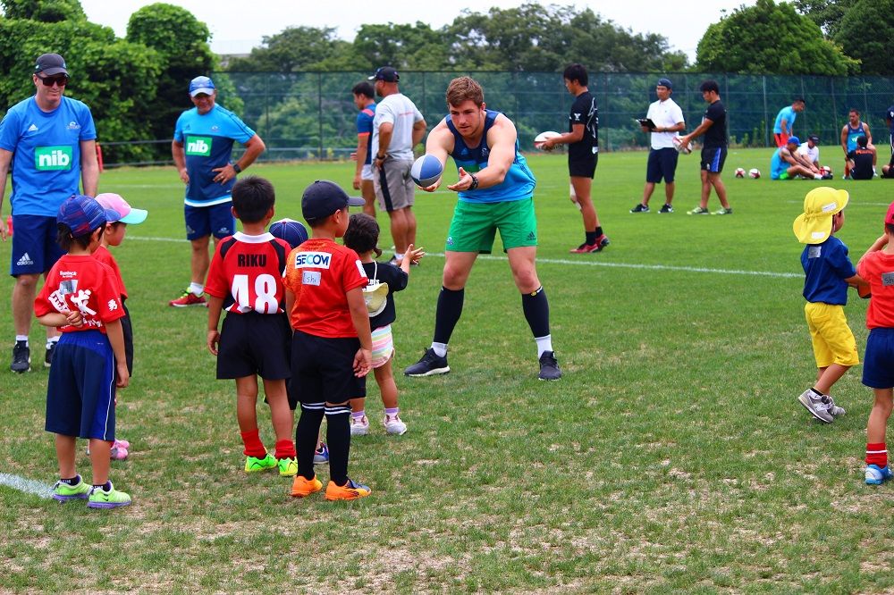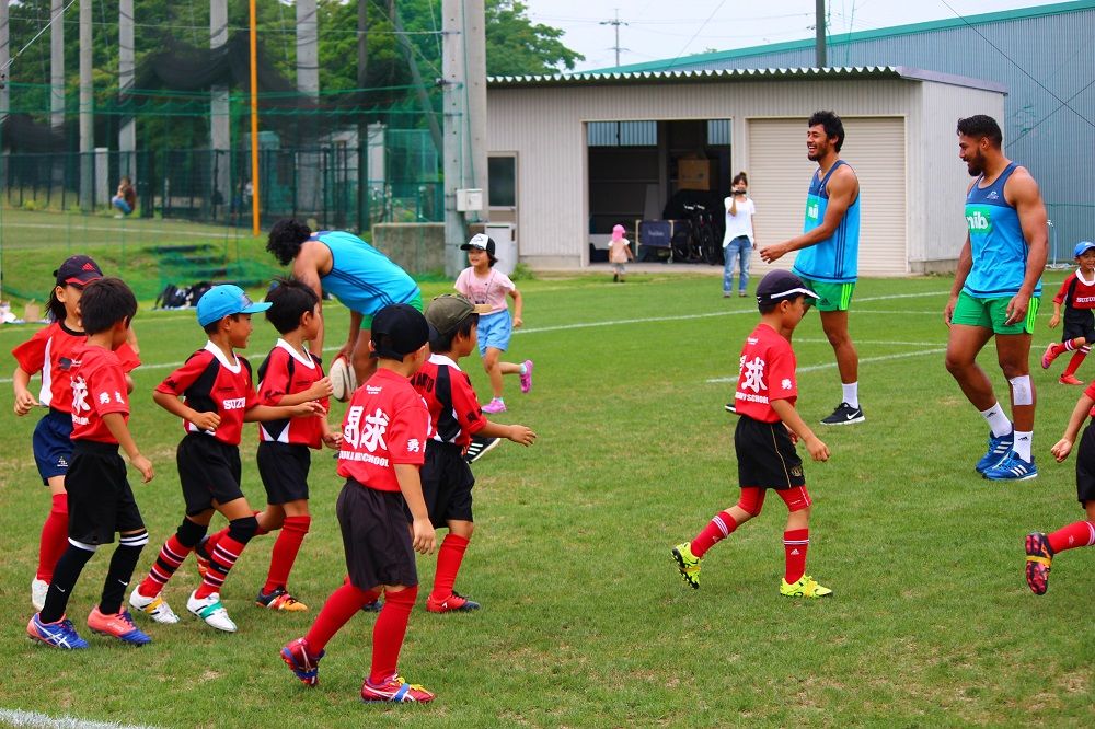 子供たちのお相手は現役バリバリのスーパーラグビーの選手達。