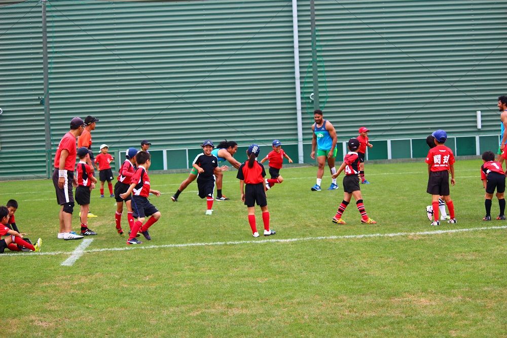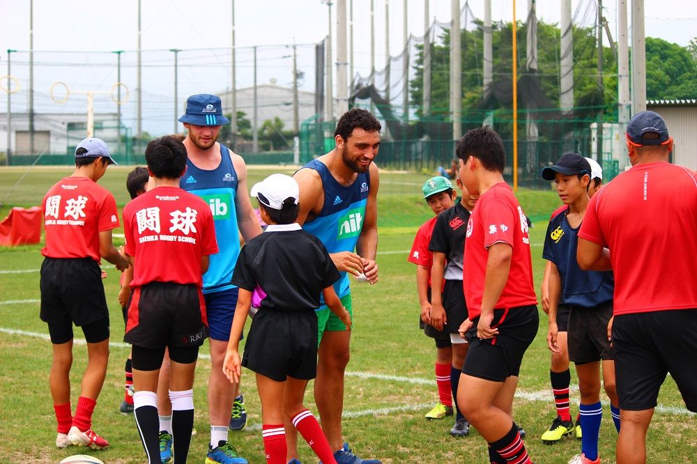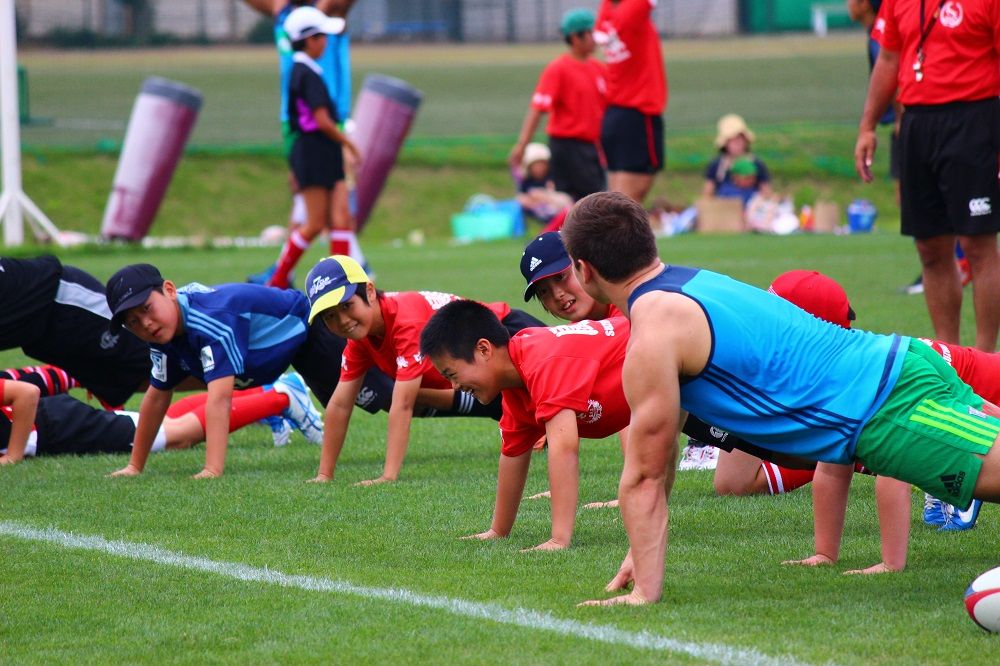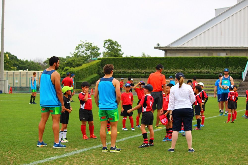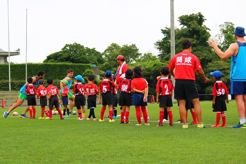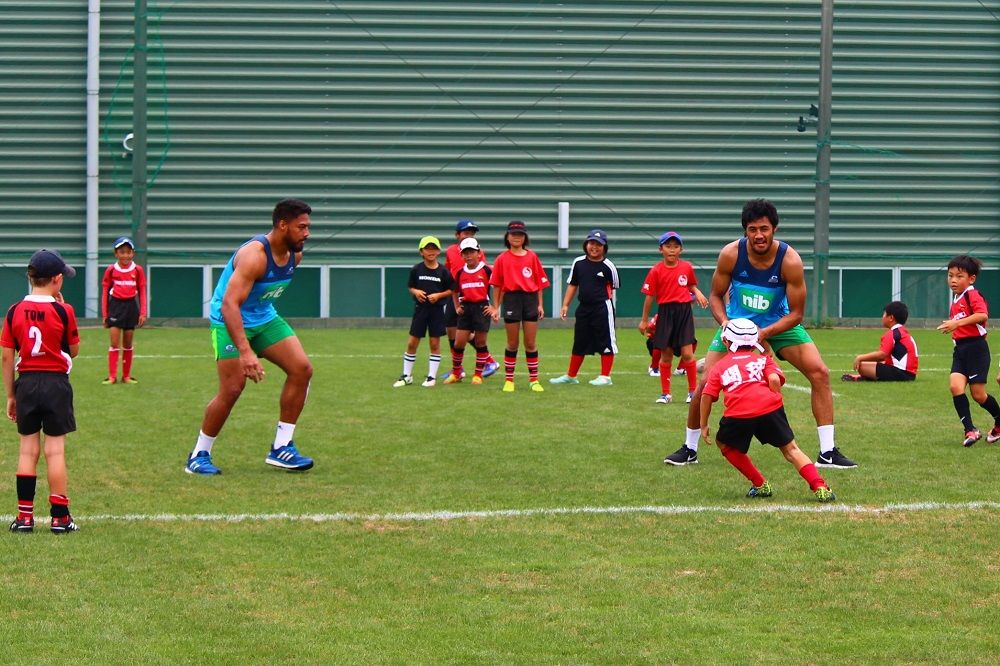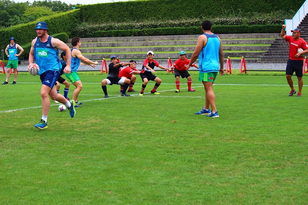 子供たちのお相手は現役バリバリのスーパーラグビーの選手達。