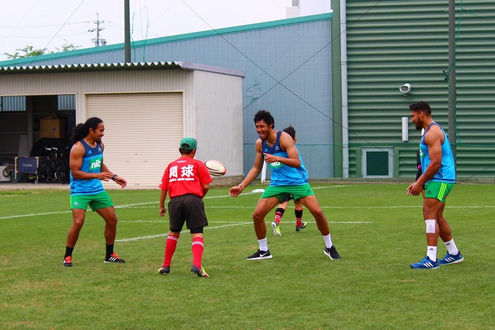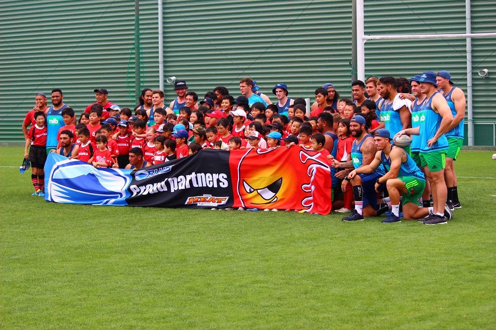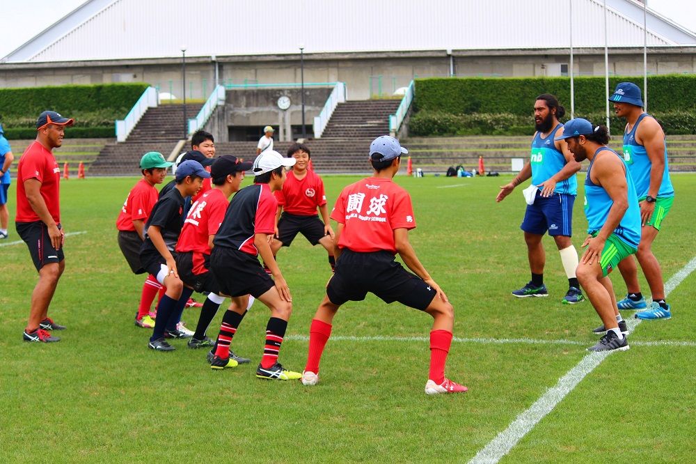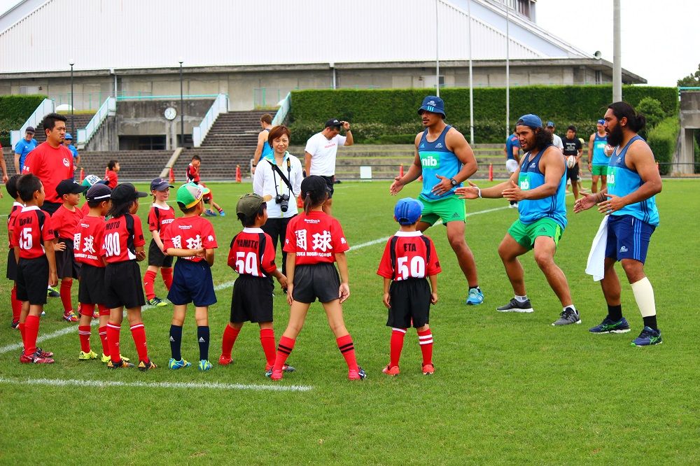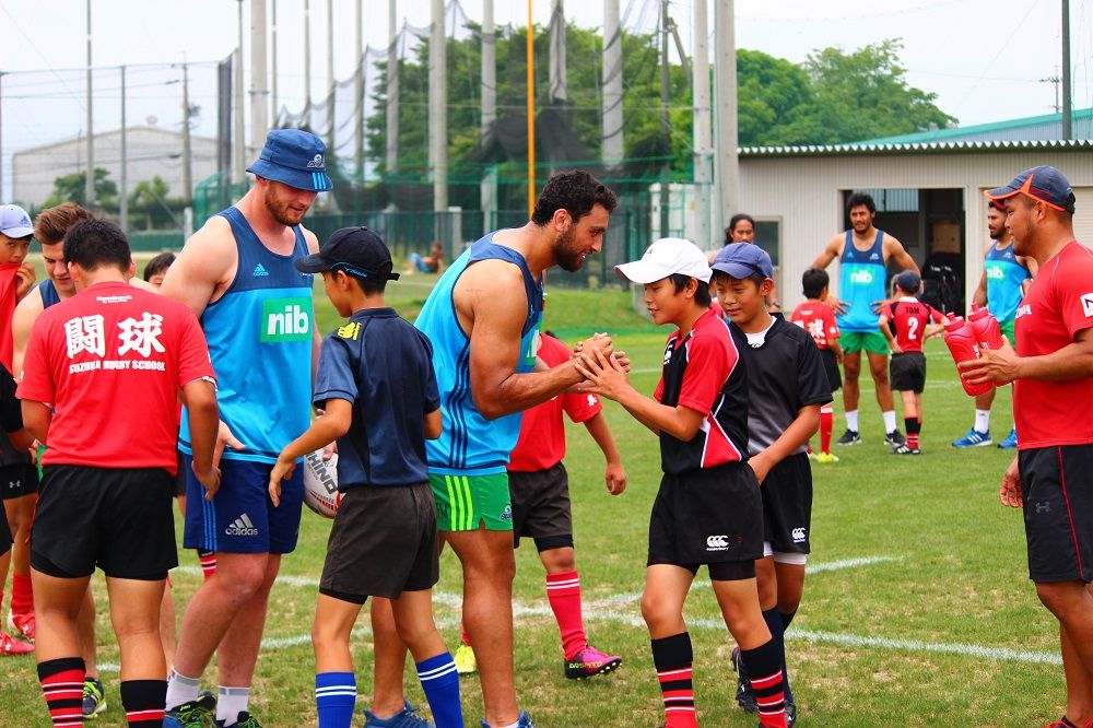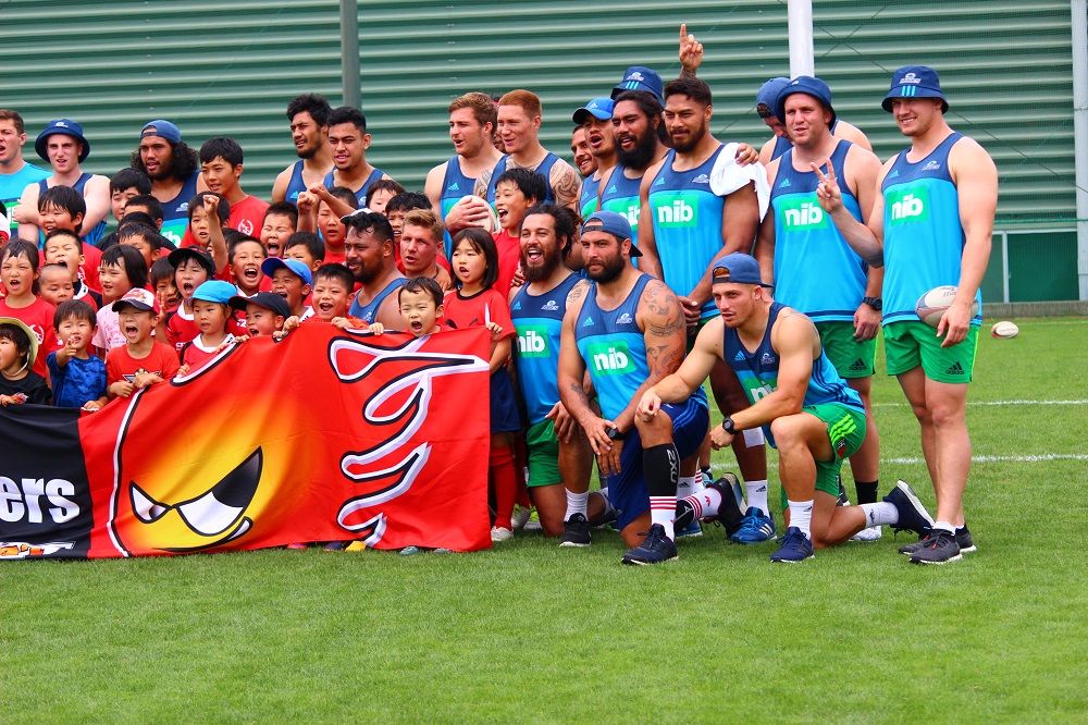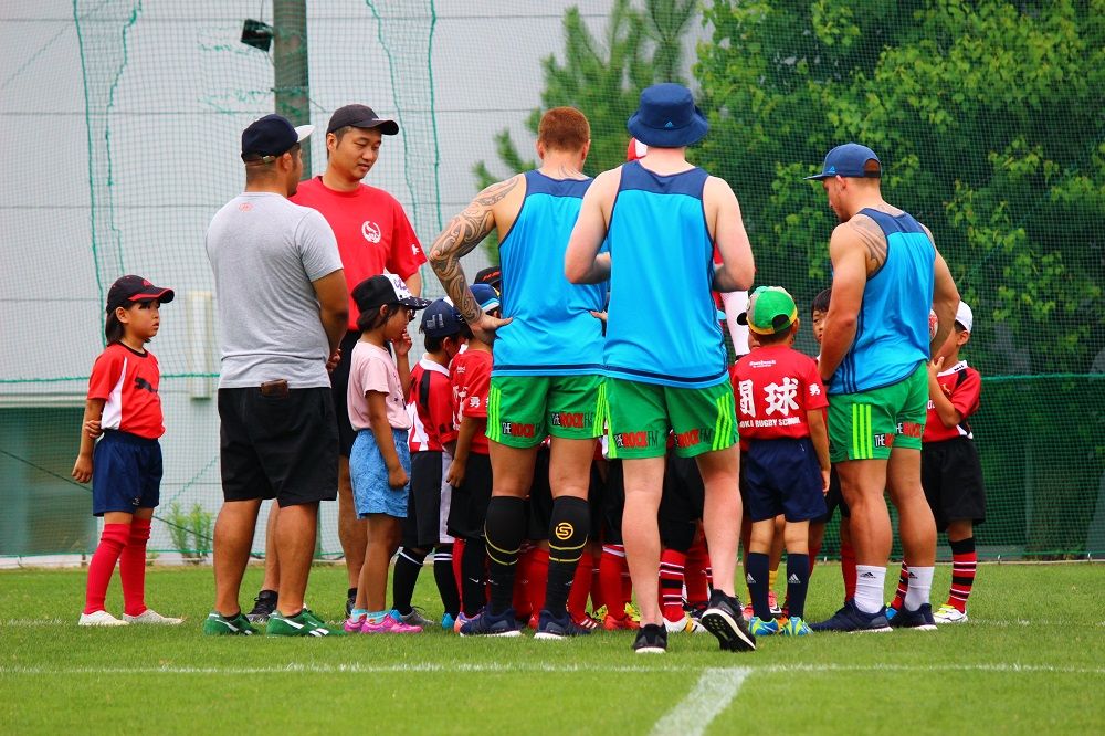 子供たちのお相手は現役バリバリのスーパーラグビーの選手達。