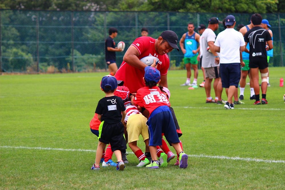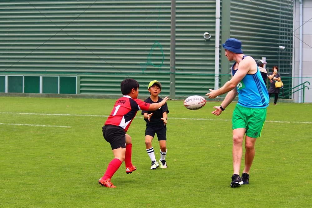 そんな中でも、終始笑顔を絶やさず、子供たちと同じ目線に立ってラグビーをしてくれていた