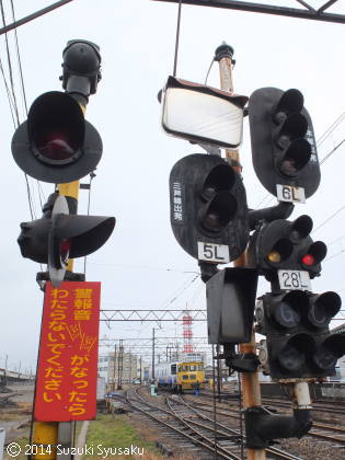 昨晩は23時過ぎに福井到着。 1時間ほど仮眠の後、ほぼ徹夜の取材も午前中には無事終了。 降り続く雨と冷たい風には参りましたが、それでも想像以上の大収穫でした。 すぐに帰って仮眠できるよう連泊で宿を取っておいたのですが、せっかくここまで来たのだからと、気合いを入れ直してえちぜん鉄道の沿線取材に繰り出します。 まずは勝山永平寺線の終点・勝山へ。 たまたま今日開催中だった「年の市」にも足を運んでみたのですが、どうやら最も賑わうのは朝のうちだったらしく、昼過ぎに着いた頃にはそろそろ出店も片付けられ始めていました。 遅めのお昼は大晦日以来、ひと月ぶりの「八助」さんで。 また左義長まつりの頃にでも…と思っていたのですが、予定よりも随分早い再訪となりました。 えちぜん鉄道と福井鉄道の結節点、田原町駅。 木造の上屋に覆われた昔ながらの佇まいが印象的な駅でしたが、いよいよ両線の相互乗り入れに向けての改修工事が始まって、まずは福井鉄道側のホームがちょうど今朝から仮設線路に切り替えられたところでした。 今後は駅舎・上屋が取り壊されて、全く新しい駅に生まれ変わることになるそうです。 本格的に御縁を持たせて頂くようになって5年余り。 すっかり馴染んだ福井の風景もこれから急速に変わっていくことになるのでしょう。 遠く離れた札幌で一人流れに取り残されてしまわないよう、これからもしっかり追い続けていかねばと思います。 夕食は勿論「ヨーロッパ軒」さんのソースカツ丼♪ さすがに福井駅前から総本店まで歩く気力は残っておらず、今日は駅から近い豊島分店のほうで…。----おしらせ----【作品掲載】えちぜん鉄道「平成26年版カレンダー」発売中!>>詳細はこちら(※PC/携帯共用)>>詳細はこちら(※PC/携帯共用)【作品掲載】季刊「スロウ」2013秋号発売中!>>詳細はこちら(※PC/携帯共用)>>詳細はこちら(※PC/携帯共用)【札幌の水彩色鉛筆画家】 ~イラストレーター鈴木周作~公式サイトも併せて御覧下さい>>[PC|Mobile|北斗星乗車記|えちてつ絵日記]