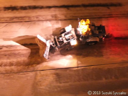 フリーランスの特権で極力週末を避けるようにはしているつもりなんですが、それでもなぜか旅程が週末に重なってしまうこともよくあります。 前回、昨年暮のクリスマス3連休の下り列車が大変な混雑ぶりだっただけに、今日もどうなることかと戦々恐々だったのですが、いざ乗ってみると車内は意外なほどひっそりとした雰囲気でした。 とは言え、覘いてみるとディナーのテーブルは満席、いつもはお弁当やお土産品を並べている一番厨房寄りの2人席までディナー客で埋まっていましたから、決してガラガラというわけでもないようです。 乗車率と言う意味での混み具合と、食堂車やロビーで感じる賑わい感は必ずしも比例しないのが面白いところで、こればかりは何度乗ってもなかなか分からないものです。 発車後まずは車内販売の「グランシャリオ弁当」で小腹を満たして、パブタイムの食堂車は軽めの夜食で済ませるのが最近の下り列車でのパターンです。 これもお気に入りのピッツァ・マルゲリータ。 パリッとした薄手の生地で、お腹一杯というよりも夜食に丁度良い位のボリュームです。 北上するにつれて外は本格的に吹雪いてきたようです。 デッキの中にまで吹き込む雪も、冬の汽車旅の風物詩です。(※「北斗星乗車記」は現在執筆中。もう少々お待ち下さい )----おしらせ----【作品掲載】えちぜん鉄道「平成26年版カレンダー」発売中!>>詳細はこちら(※PC/携帯共用)>>詳細はこちら(※PC/携帯共用)【作品掲載】季刊「スロウ」2013秋号発売中!>>詳細はこちら(※PC/携帯共用)>>詳細はこちら(※PC/携帯共用)【札幌の水彩色鉛筆画家】 ~イラストレーター鈴木周作~公式サイトも併せて御覧下さい>>[PC|Mobile|北斗星乗車記|えちてつ絵日記]