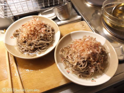 札幌の蕎麦屋さんではなかなか見当たらないので、意を決して自分で作ってみることにしました。 と言っても、スーパーで売っているゆで蕎麦を温めて、大根おろしと鰹節をかけただけの簡易版ですが…。----おしらせ----【作品掲載】えちぜん鉄道「平成26年版カレンダー」発売中!>>詳細はこちら(※PC/携帯共用)>>詳細はこちら(※PC/携帯共用)【作品掲載】季刊「スロウ」2013秋号発売中!>>詳細はこちら(※PC/携帯共用)>>詳細はこちら(※PC/携帯共用)【札幌の水彩色鉛筆画家】 ~イラストレーター鈴木周作~公式サイトも併せて御覧下さい>>[PC|Mobile|北斗星乗車記|えちてつ絵日記]