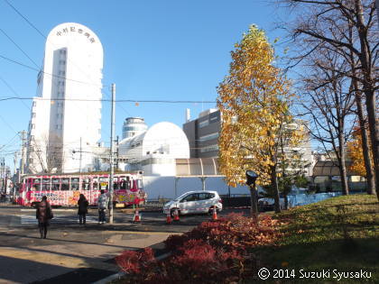 素晴らしい秋晴れ。 市電沿線で取材しておかねばならない風景があったので、今日のうちに急いで観に行ってきました。 目先の作業でバタバタしているうちに、気が付けばすっかり秋も終わりつつあることに気付いて今更ながら焦ります。----おしらせ----【作品掲載】日本の美を伝える和風年賀状素材集「和の趣」未どし版発売中!>>詳細はこちら(※PC/携帯共用)【作品掲載】季刊「スロウ」2014秋号発売中!>>詳細はこちら(※PC/携帯共用)【作品掲載】小学館SJムック「とっておき寝台列車の旅」6/19発売! >>詳細はこちら(※PC/携帯共用)【札幌の水彩色鉛筆画家】 ~イラストレーター鈴木周作~公式サイトも併せて御覧下さい>>[PC|Mobile|北斗星乗車記|えちてつ絵日記]