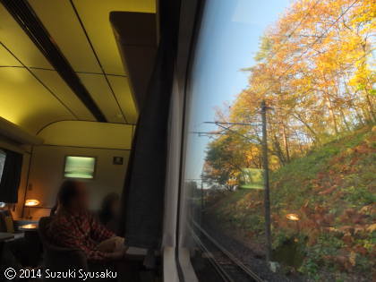 上り「北斗星」で迎えた朝。 食堂車は既に満席でしばらくロビーで待つことに。 北海道はそろそろ冬景色ですが、本州の車窓はまだまだ鮮やかな秋色の風景です。 ほぼ定刻通りに上野到着。 出発前には迷いましたが、やはりコートは置いてきて正解でした。 これから地下鉄に乗り換えて出版社さんに向かいます。----おしらせ----【作品掲載】日本の美を伝える和風年賀状素材集「和の趣」未どし版発売中!>>詳細はこちら(※PC/携帯共用)【作品掲載】季刊「スロウ」2014秋号発売中!>>詳細はこちら(※PC/携帯共用)【作品掲載】小学館SJムック「とっておき寝台列車の旅」6/19発売! >>詳細はこちら(※PC/携帯共用)【札幌の水彩色鉛筆画家】 ~イラストレーター鈴木周作~公式サイトも併せて御覧下さい>>[PC|Mobile|北斗星乗車記|えちてつ絵日記]