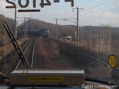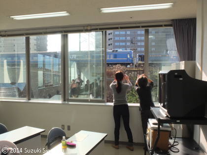 NHK文化センター新さっぽろ教室での水彩色鉛筆画講座の指導中。 さすがに普段はこんな我儘はしないのですが、今回ばかりは目下進行中のお仕事にも直接関わる珍事だけに、生徒さん達に謝って一瞬だけ自分の「取材」をさせて頂きました。 11時過ぎ、いつものよう通過していく下り「北斗星」に繋がれていたのは、普段まず使われることのない珍しい客車。 とは言っても、機関車の後ろの「電源車」がいつもと違う…というのはマニアック過ぎて、生徒さん達にはなかなか理解して頂けなかったかも知れませんね。 講座終了後はそのままタクシーで札幌ドームへ。 ファイターズの年に一度のファンフェスティバル。 なぜか土曜開催となることが多いようで、以前にも講座日程とバッティングしてしまう年があったような気がします。 それにしても今回のファンフェスティバル、これまでとは内容を大きく変えて…との触れ込みでしたが、率直なところあまり評判は芳しくなかったようで…。 確かにグラウンド上での選手の皆さんのパフォーマンスが殆ど見られず、ステージ上や別室でのトークイベント的なものをひたすら大型ビジョンを通じて見ているだけなら、敢えてドームまで行かずとも後日のTV放送で充分かな?と感じてしまいます。 勿論、関係者の方々も諸々事情のある中で頑張って下さっているのだとは思いますが、次回こそは是非もう一歩…と期待したいところです。 夕方、上り「北斗星」を見送りに行ってみると、件の「電源車」が別車両に差し替えられていました。 こちらが本来の車両。 一見同じに見えますが、車体側面の「鎧窓」が無いのが大きな違いです。 この電源車、通常はJR東日本持ちの車両が使われることになっているのですが、どうやら札幌側での出発前に不具合が生じたらしく、一昨日20日の上り列車からJR北海道持ちの予備車両に差し替えられていたようです。 で、上野まで一往復して今日戻ってきたところで、修理を終えた本来の車両と交換…というわけでしょう。 分かる人にしか分からない話で恐縮ですが…。 敢えて言うなら、中嶋聡兼任コーチが打席に立つようなもの…と言えば、事の珍しさがお分かり頂けるでしょうか!?----おしらせ----【作品掲載】日本の美を伝える和風年賀状素材集「和の趣」未どし版発売中!>>詳細はこちら(※PC/携帯共用)【作品掲載】季刊「スロウ」2014秋号発売中!>>詳細はこちら(※PC/携帯共用)【作品掲載】小学館SJムック「とっておき寝台列車の旅」発売中! >>詳細はこちら(※PC/携帯共用)【札幌の水彩色鉛筆画家】 ~イラストレーター鈴木周作~公式サイトも併せて御覧下さい>>[PC|Mobile|北斗星乗車記|えちてつ絵日記]