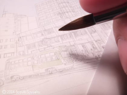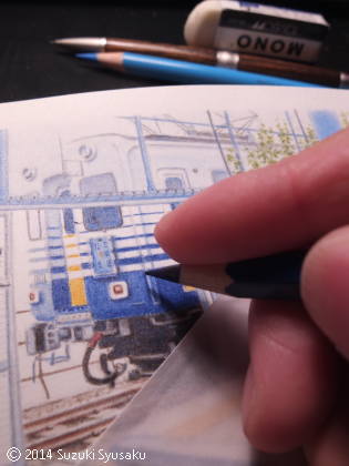 先々月あたりから福井の絵ばかり描いていたので、札幌の電車はちょっと久々です。 しっかり気持ちを切り替えて、早々に仕上げてしまわないと…。----おしらせ----【作品掲載】日本の美を伝える和風年賀状素材集「和の趣」未どし版発売中!>>詳細はこちら(※PC/携帯共用)【作品掲載】季刊「スロウ」2014秋号発売中!>>詳細はこちら(※PC/携帯共用)【作品掲載】小学館SJムック「とっておき寝台列車の旅」6/19発売! >>詳細はこちら(※PC/携帯共用)【札幌の水彩色鉛筆画家】 ~イラストレーター鈴木周作~公式サイトも併せて御覧下さい>>[PC|Mobile|北斗星乗車記|えちてつ絵日記]