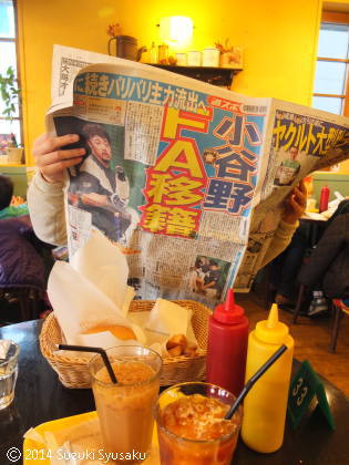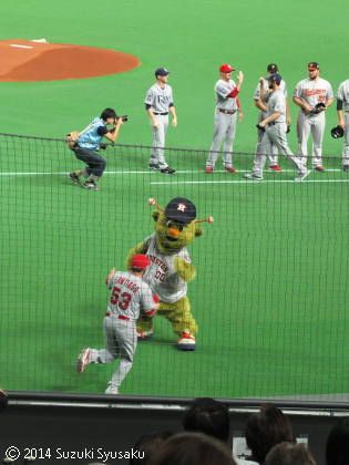 札幌ドームで行われた日米野球第5戦。 一塁側に席を取ったらすぐ前が外国人の団体さんで、英語やスペイン語とおぼしき歓声やヤジ?が飛び交ってある意味臨場感満点でした。 肝心の試合の方は…先発・大谷翔平投手が4回2失点で降板。 打線も元気ないまま1対3で敗戦。 初戦からの3連勝、とりわけ3戦目のノーヒットノーランリレーで勢いに乗ったかと思いきや、逆に相手に気合を入れてしまったのでしょうか? 今年のファイターズ公式戦、球場に足を運んだ試合は見事全勝が続いていたのですが…。----おしらせ----【作品掲載】日本の美を伝える和風年賀状素材集「和の趣」未どし版発売中!>>詳細はこちら(※PC/携帯共用)【作品掲載】季刊「スロウ」2014秋号発売中!>>詳細はこちら(※PC/携帯共用)【作品掲載】小学館SJムック「とっておき寝台列車の旅」発売中! >>詳細はこちら(※PC/携帯共用)【札幌の水彩色鉛筆画家】 ~イラストレーター鈴木周作~公式サイトも併せて御覧下さい>>[PC|Mobile|北斗星乗車記|えちてつ絵日記]