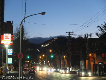 夕方から、普段あまり足を向けない界隈にまで買い物に出掛けてきました。 こんなところからもジャンプ台が見えるんだ!…と、ちょっと意外な発見でした。 喫緊の締切はとりあえずひと段落。 やるべき作業は他にもまだ溜まってはいるのですが、このあたりで少し落ち着いて色々整理しておこうと思います。----おしらせ----【作品掲載】日本の美を伝える和風年賀状素材集「和の趣」未どし版発売中!>>詳細はこちら(※PC/携帯共用)【作品掲載】季刊「スロウ」2014秋号発売中!>>詳細はこちら(※PC/携帯共用)【作品掲載】小学館SJムック「とっておき寝台列車の旅」発売中! >>詳細はこちら(※PC/携帯共用)【札幌の水彩色鉛筆画家】 ~イラストレーター鈴木周作~公式サイトも併せて御覧下さい>>[PC|Mobile|北斗星乗車記|えちてつ絵日記]